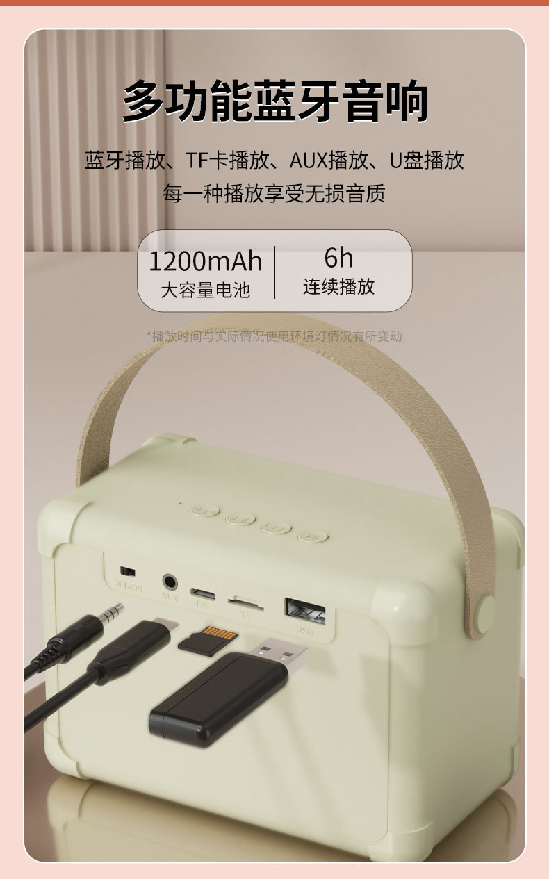 Nguồn điện: USB Cho dù đó là bằng sáng chế Nguồn hàng: Không Cho dù đó là ngoại thương: Không Màu sắc: Trắng nhạt/hồng dịu dàng/hồng nhạt Dải tần đáp ứng: 100HZ-20KHZ Trọng lượng tịnh của sản phẩm: 0,6kg Thời gian đưa ra thị trường: 2023 Dịch vụ hậu mãi: Lưu trữ ba gói Số: H1 Cảnh áp dụng: ô tô/máy tính để bàn/thể dục/ngoài trời/nhà/di động/di động/Karaoke/phát sóng trực tiếp/bãi cỏ ngoài trời/bãi cỏ ngoài trời Kích thước: 130 *73*90 Công suất định mức: 5 Pin tích hợp: Pin tích hợp Thông số kỹ thuật: loa đơn (không có micrô)/loa + micrô đơn/loa + micrô kép/loa + micrô kép Chất liệu thùng loa: ABS Mức độ chống thấm nước: không thấm nước Nền tảng hạ nguồn chính: ebay/Amazon/wish/AliExpress/trạm độc lập/LAZADA/LAZADA Khoảng cách hiệu quả: 10m Khu vực bán hàng chính: Nhật Bản và Hàn Quốc/Châu Phi/Hàn Quốc/Nhật Bản/Châu Âu/Nam Mỹ/Đông Nam Á/Bắc Mỹ/ Đông Bắc Á/Trung Đông/Mỹ Latinh/Châu Âu và Châu Mỹ/Châu Âu và Châu Mỹ Tỷ lệ tín hiệu trên tạp âm: ≥70db