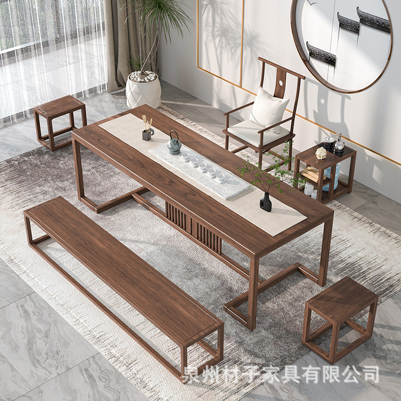 Mới kiểu Trung Quốc chắc chắn Bàn trà gỗ phòng trà Thiền Kung Fu bảng lớn Bàn trà đầy đủ phòng khách nhà La Hán giường bàn ghế trà