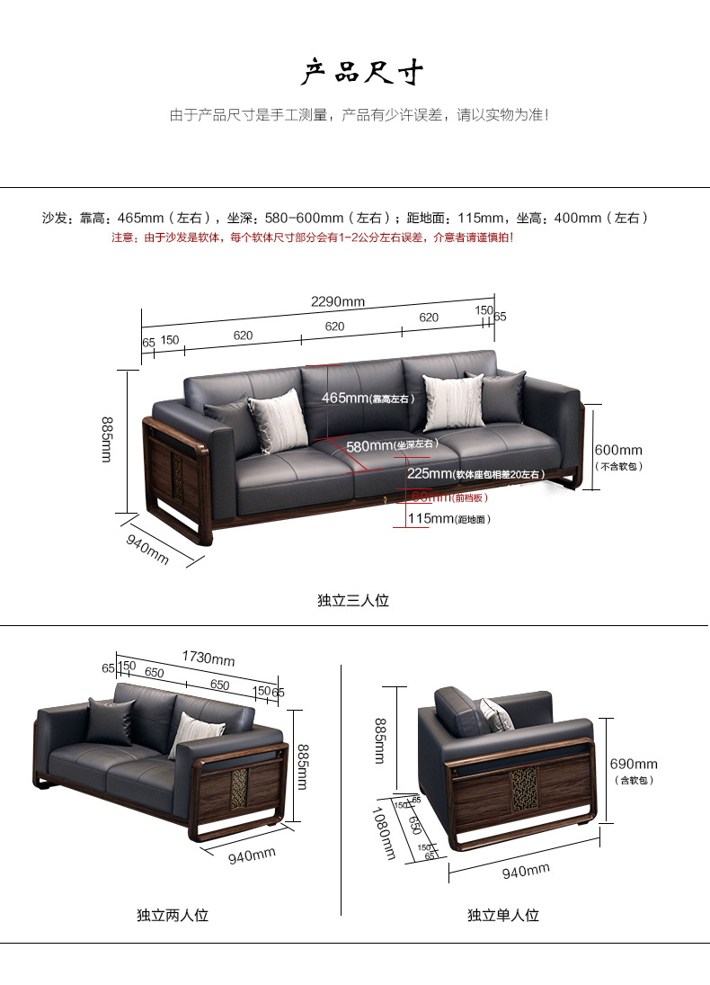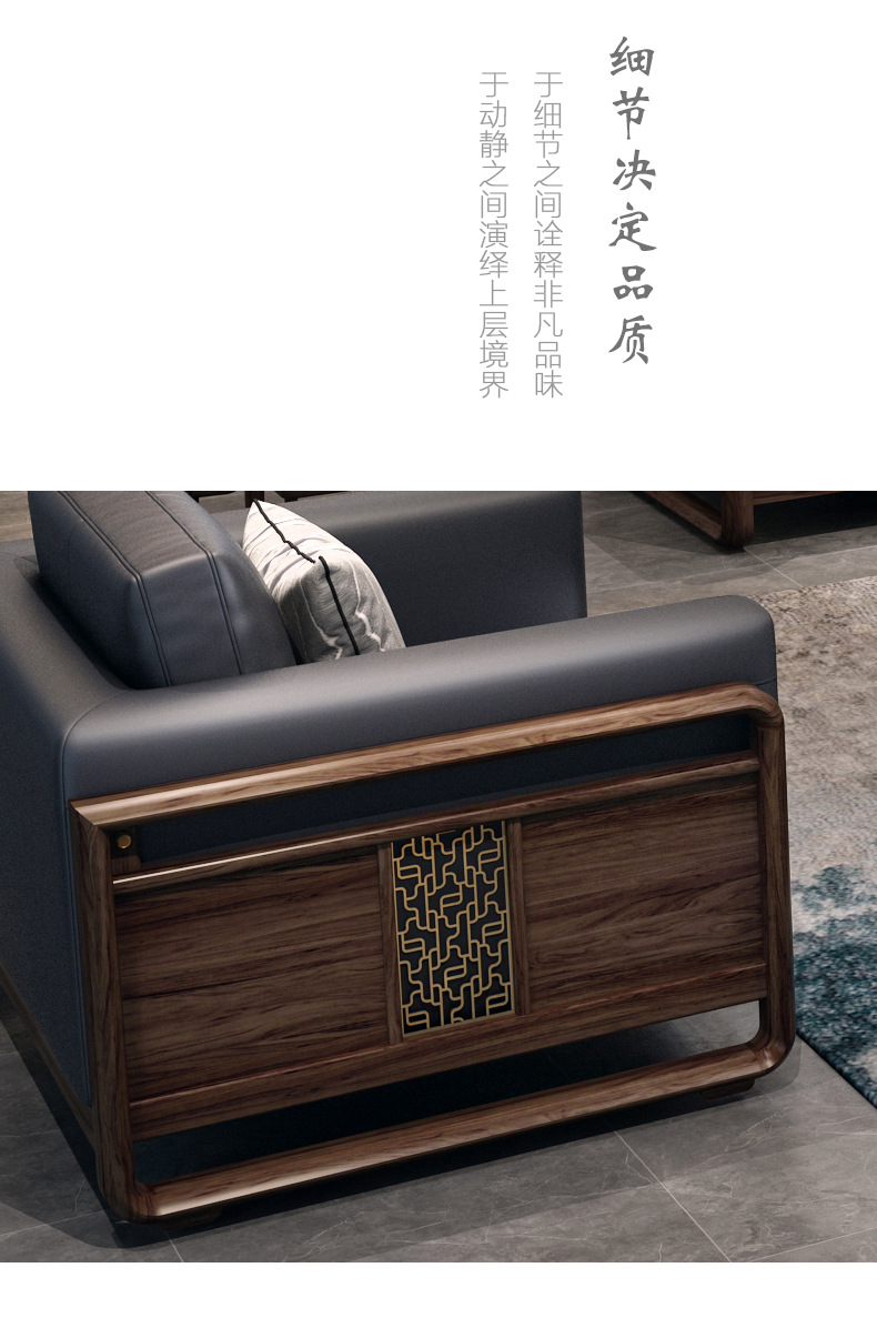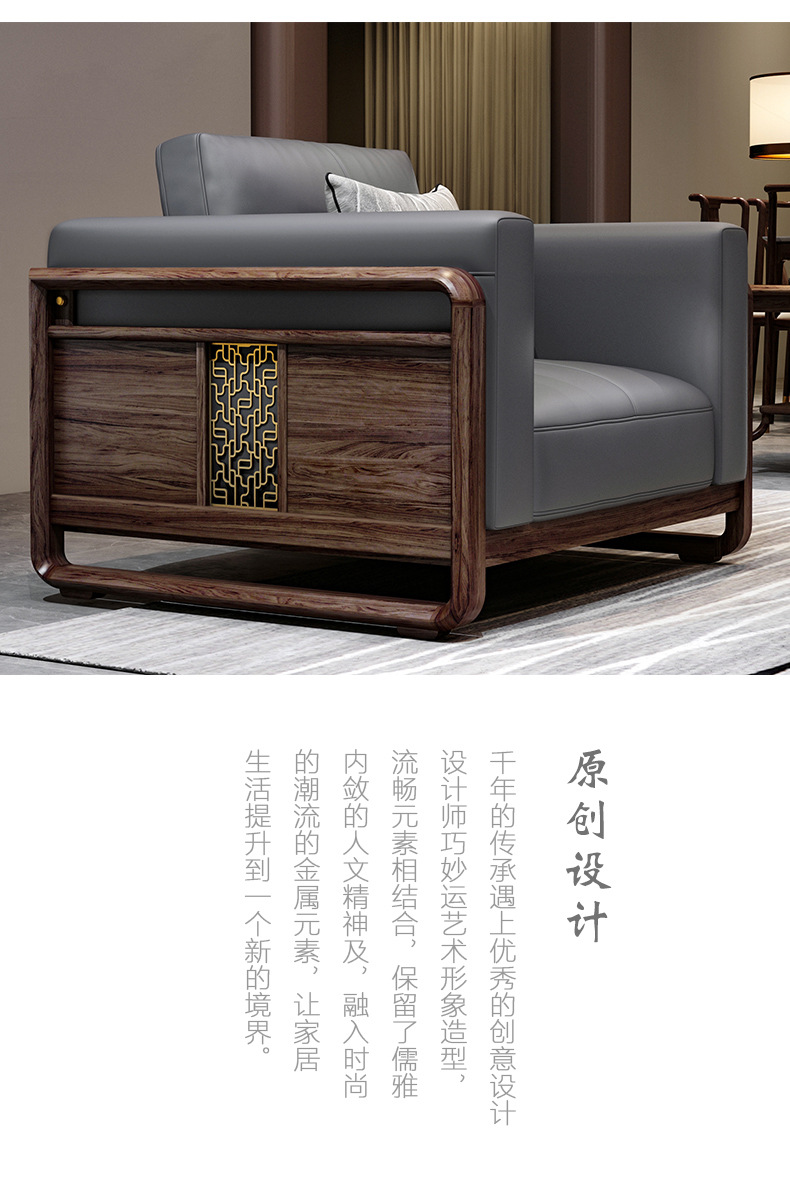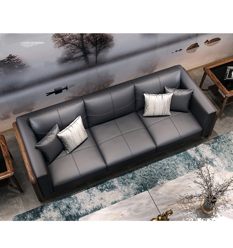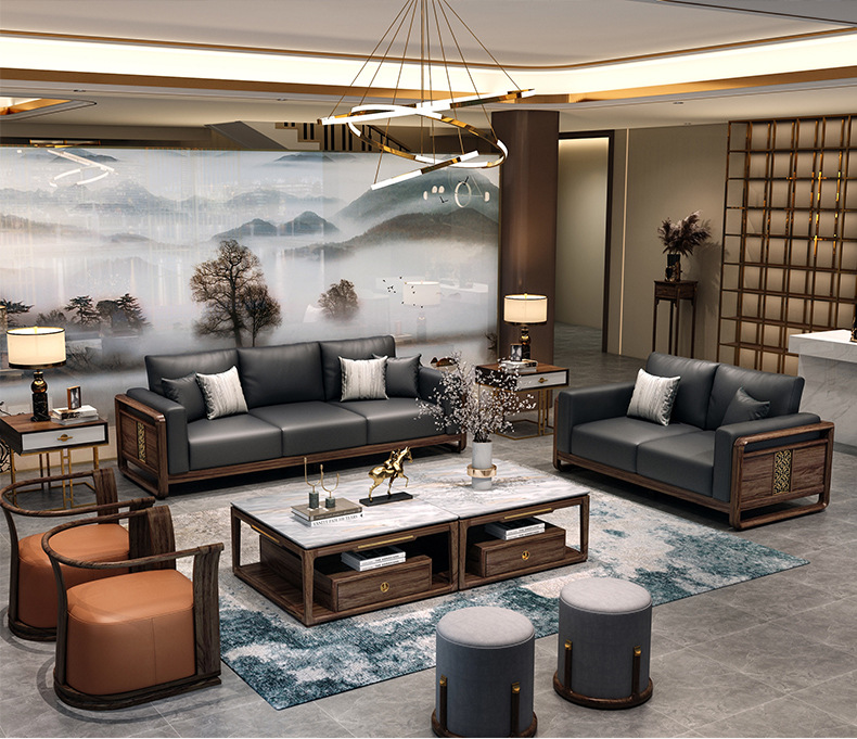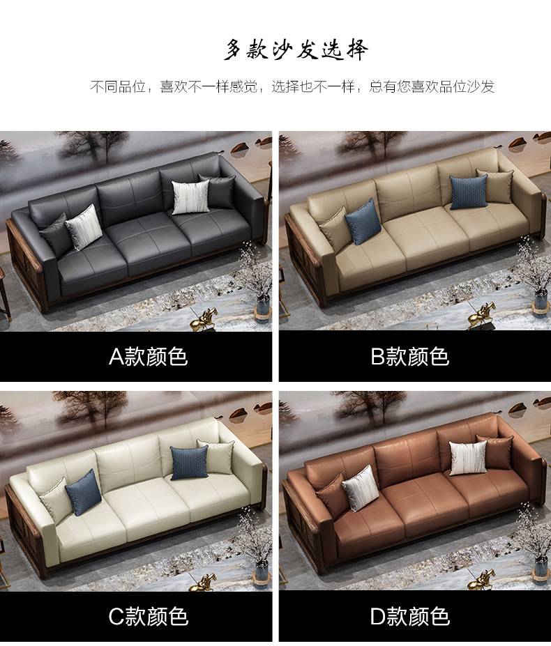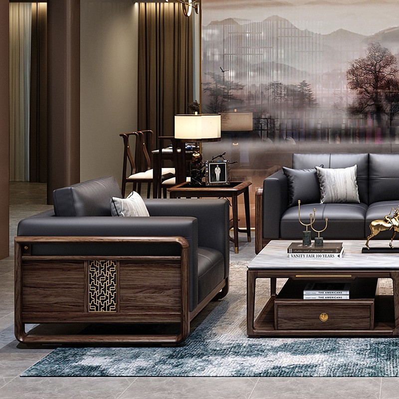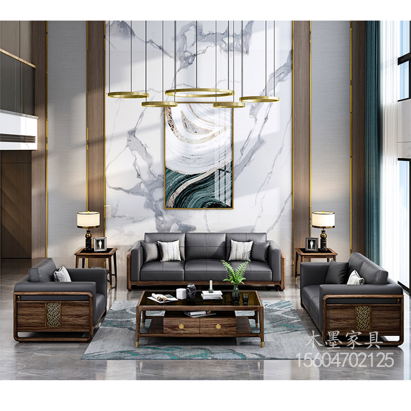 Mới kiểu Trung Quốc chắc chắn sofa gỗ kết hợp gỗ mun ánh sáng sang trọng sofa da biệt thự hiện đại lớn nội thất phòng khách