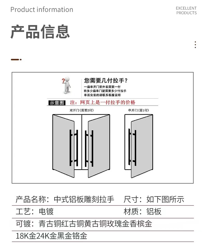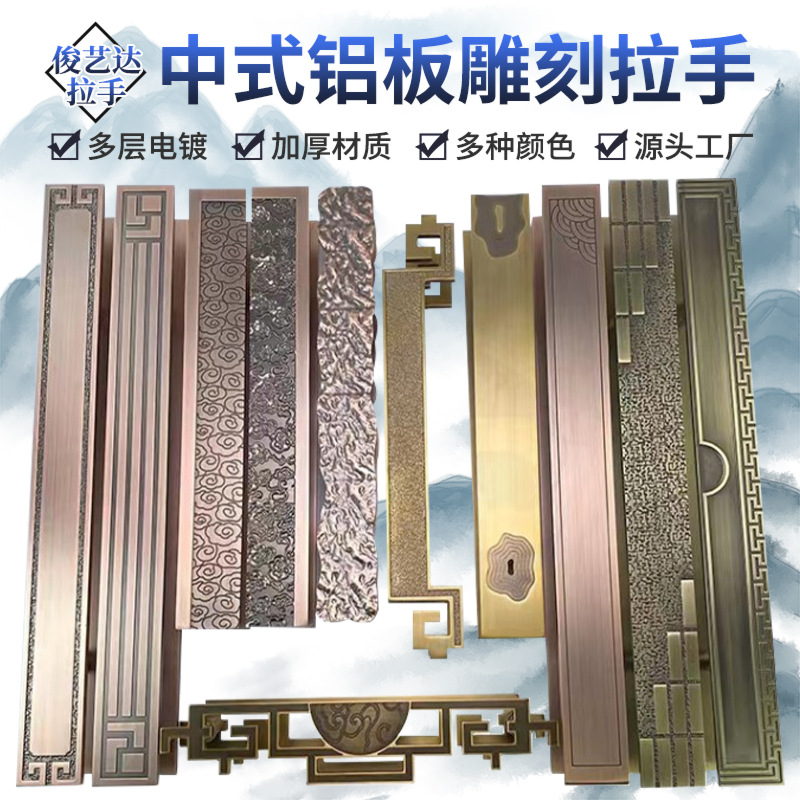 Mới kiểu Trung Quốc tay nắm cửa cổ Tương Vân bằng đồng hộp gỗ khách sạn logo kéo đẩy tay nắm cửa kính