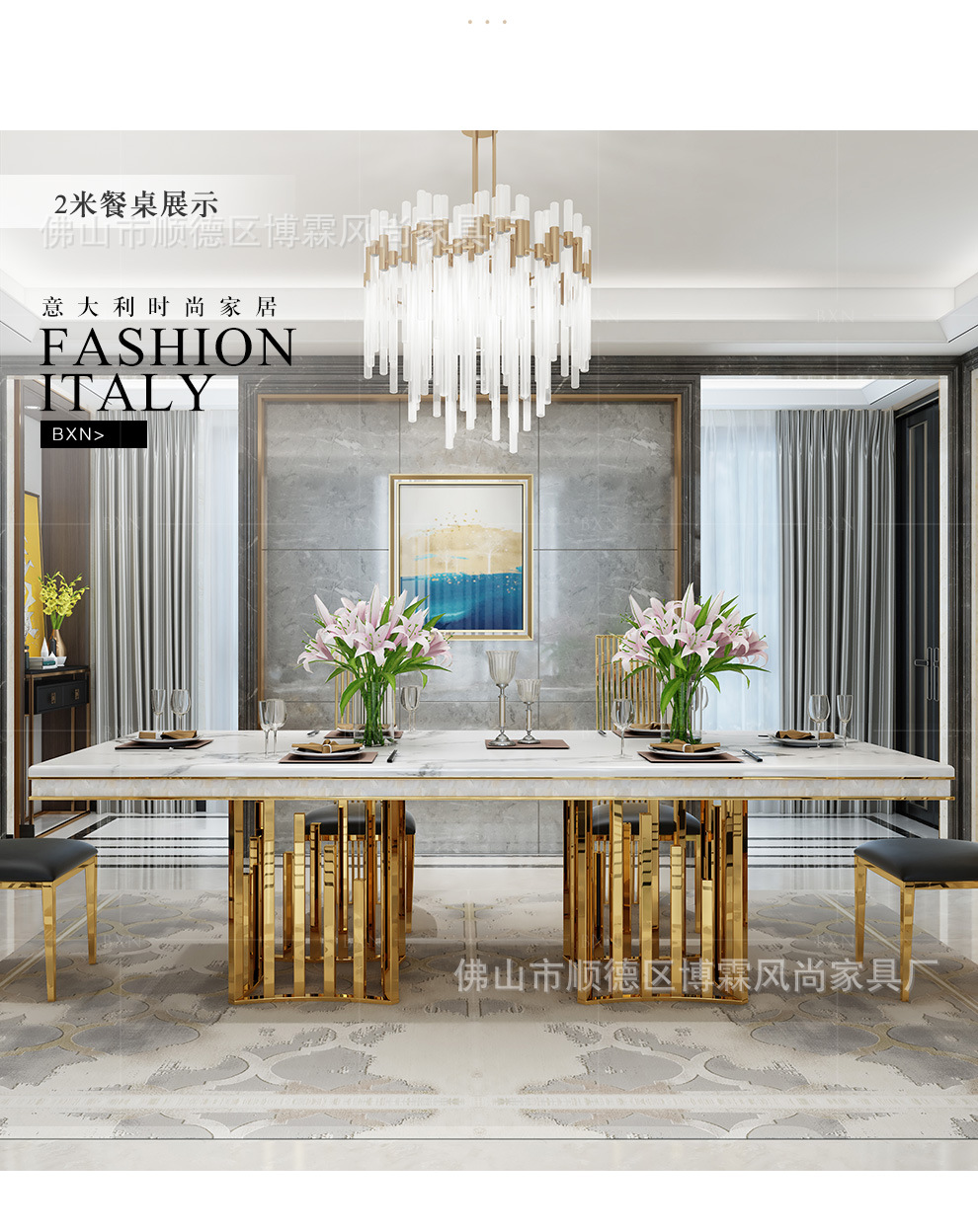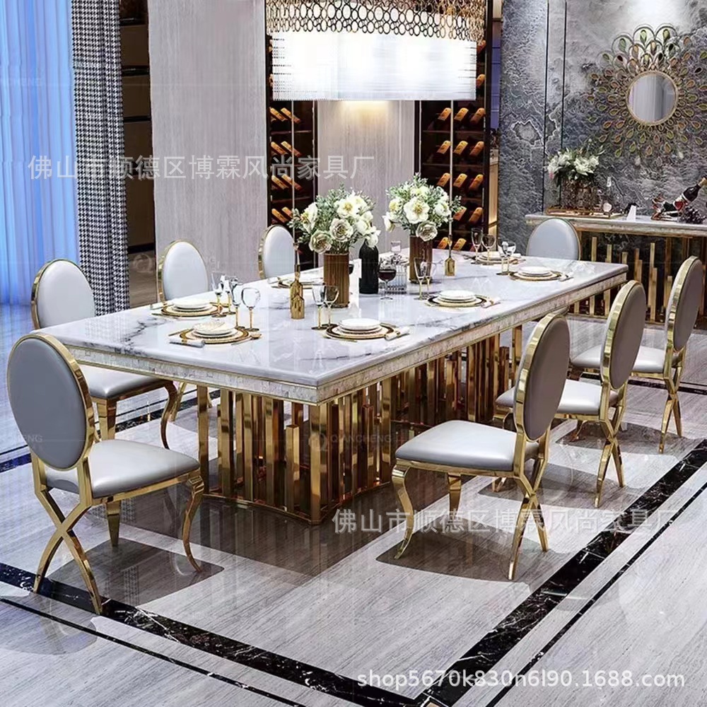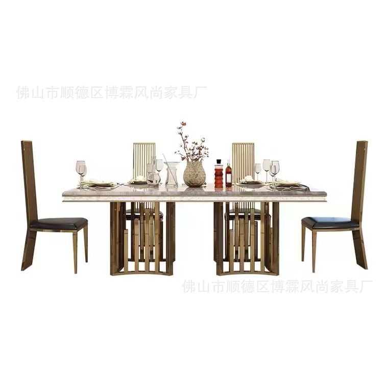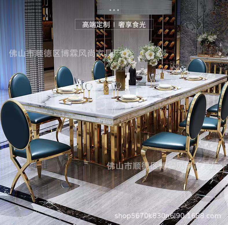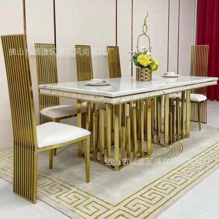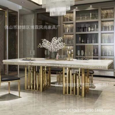 Mới liệt kê bàn ăn bằng đá cẩm thạch bằng thép không gỉ bàn ăn chữ nhật nhà hàng bàn ăn đá phiến nhà máy bán hàng trực tiếp là sản phẩm nổi bật trong dòng bàn ăn nhập khẩu, thiết kế hiện đại và sang trọng, phù hợp với nhiều không gian nội thất cao cấp.
