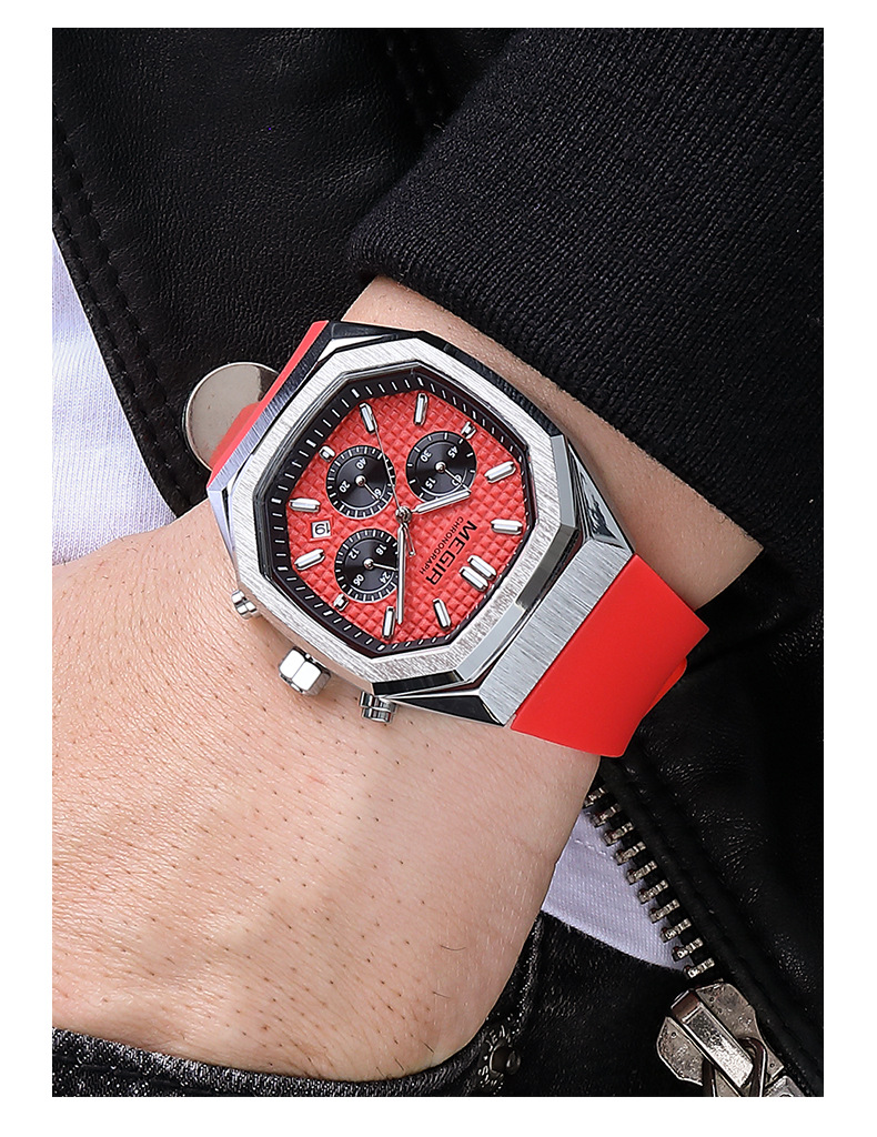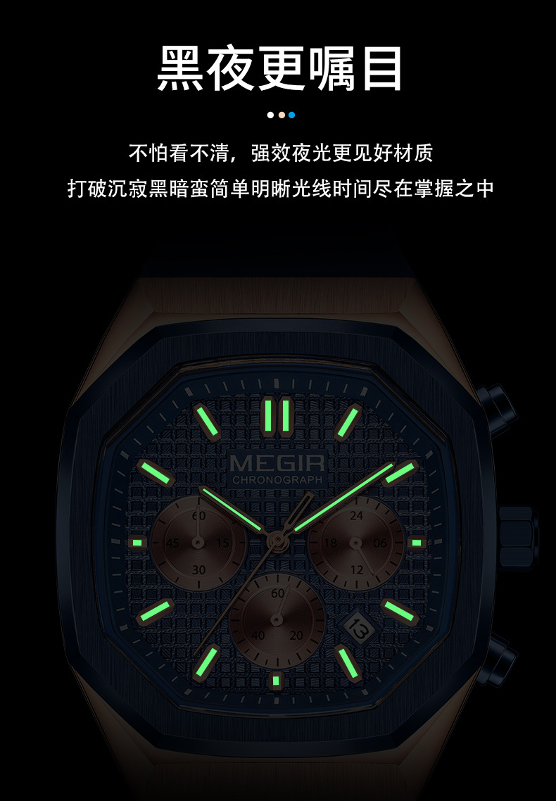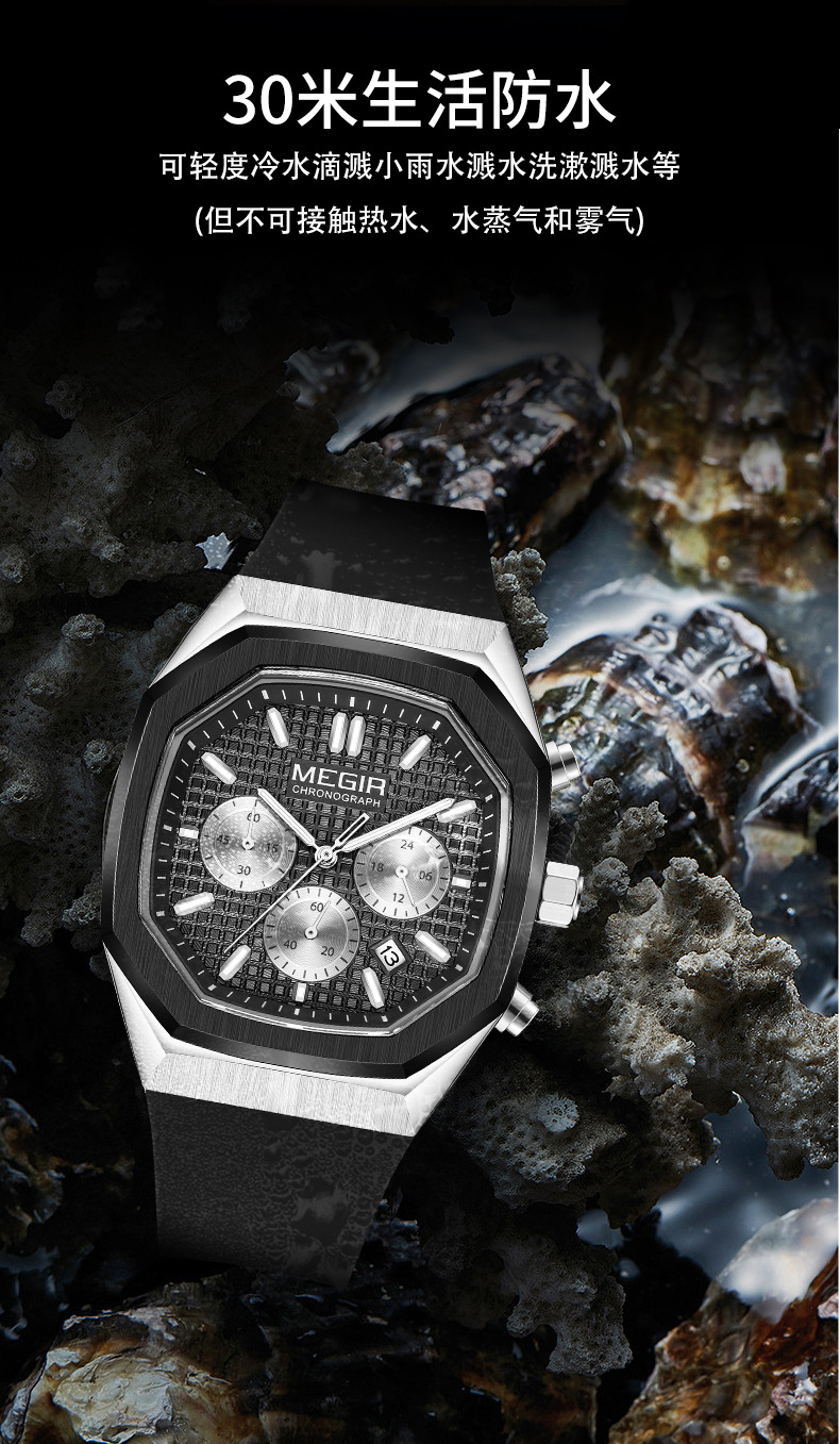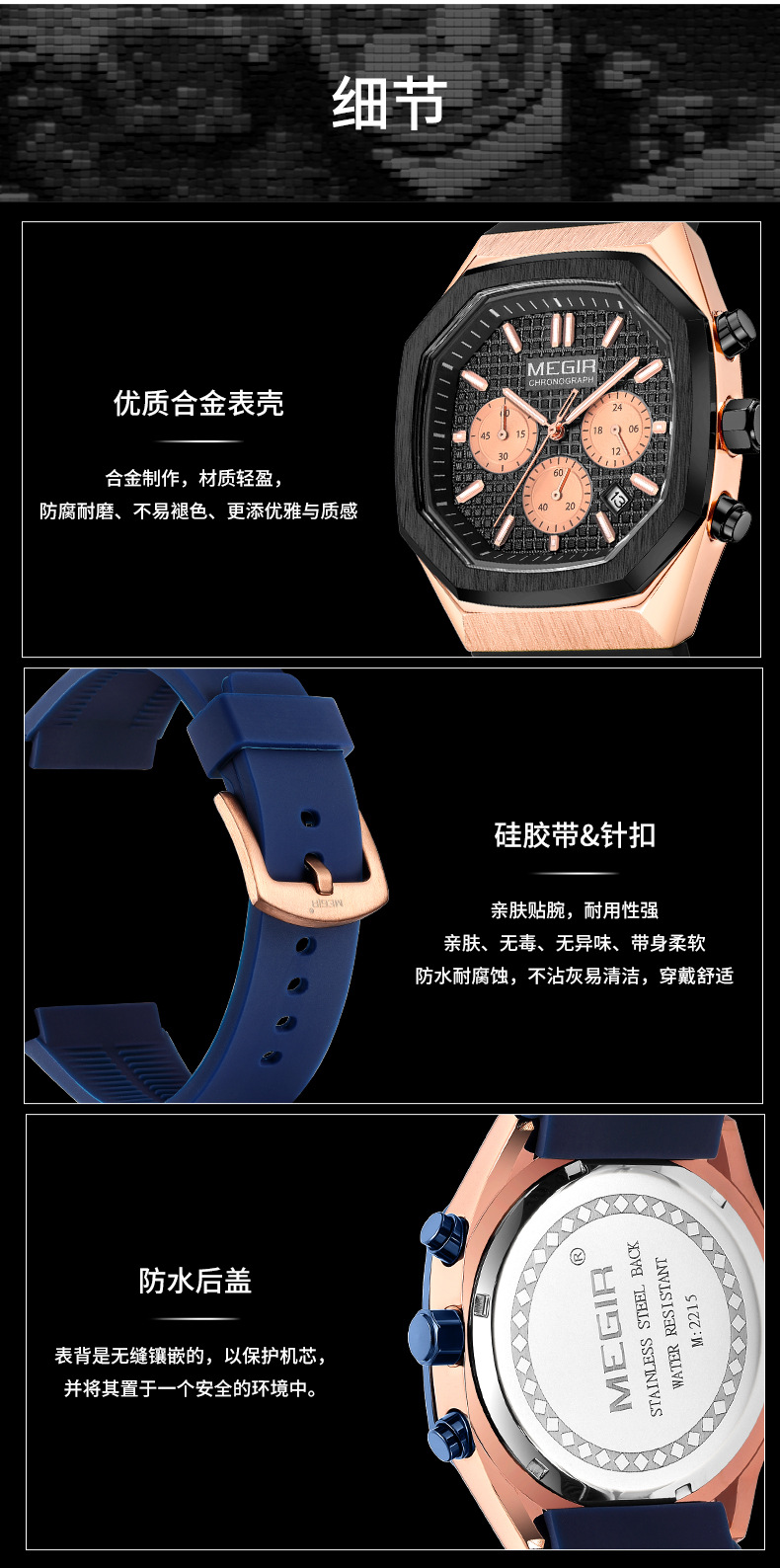Mới MEGIR Đồng Hồ Nam Đa Năng Chronograph Lịch Vuông Thời Trang Đồng Hồ Thể Thao Nam 2215