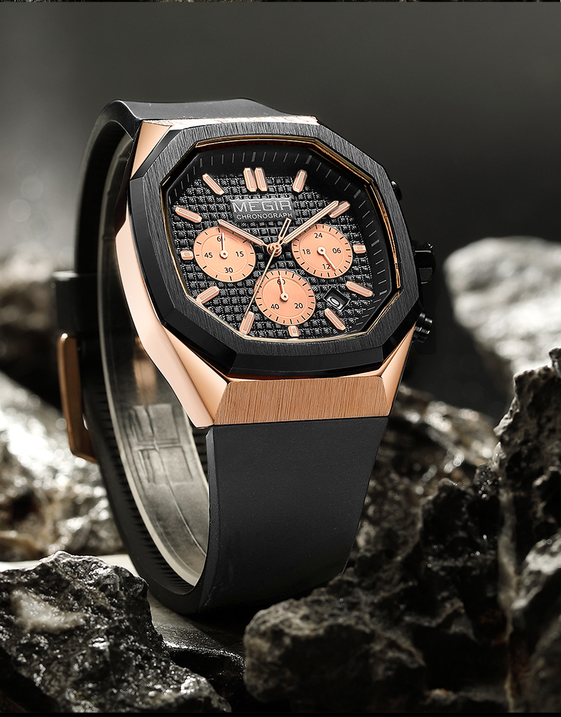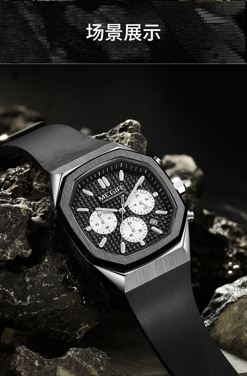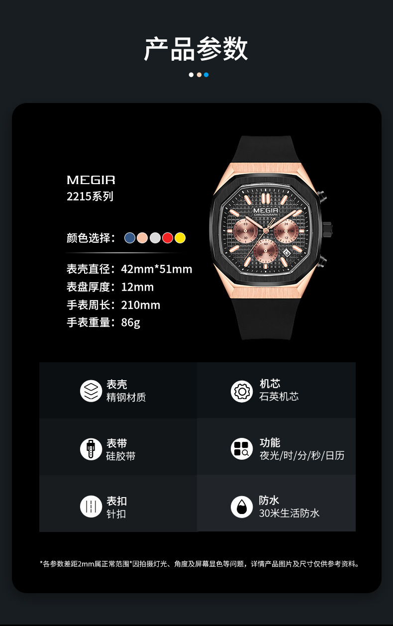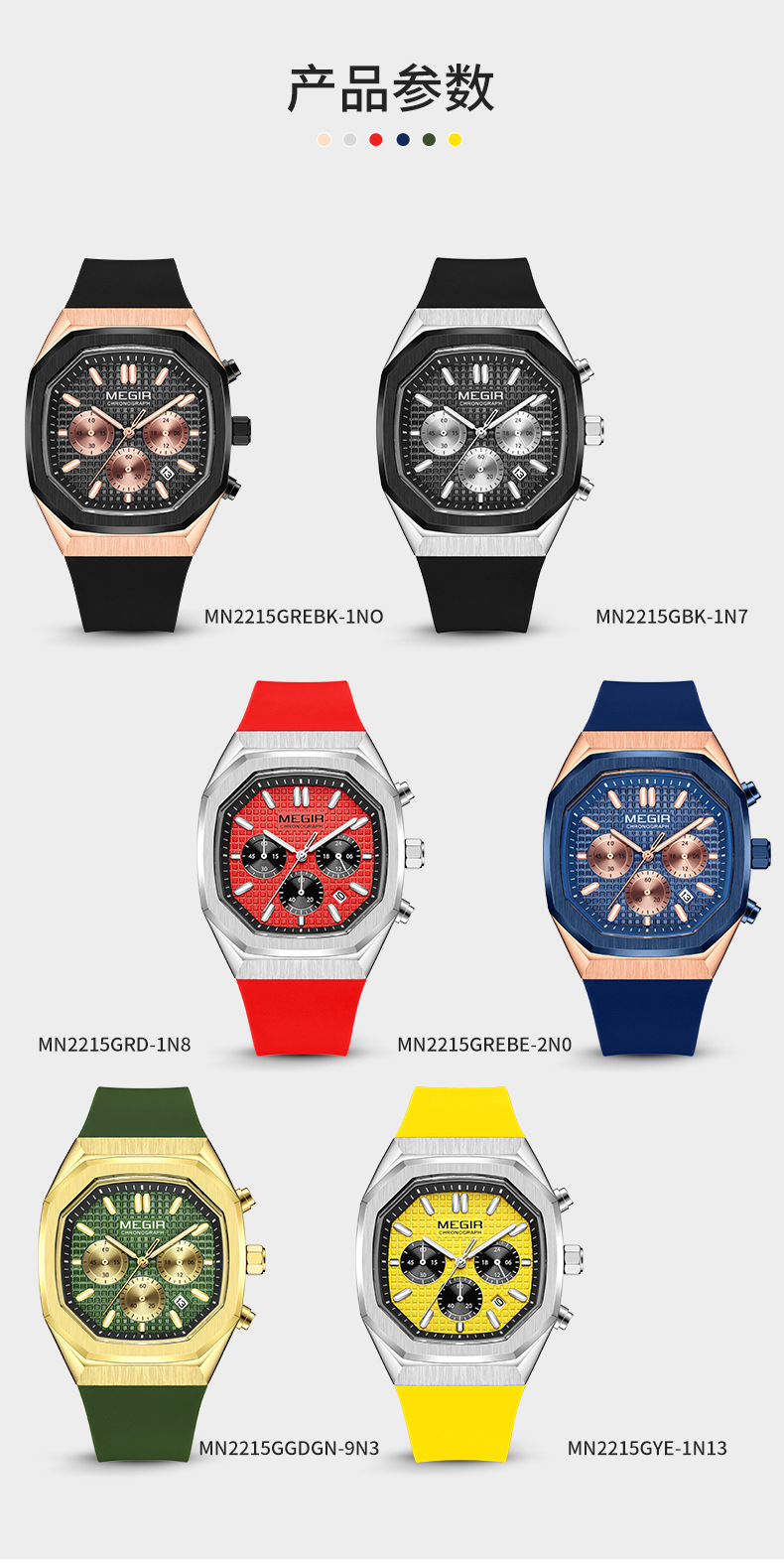 Mới MEGIR Đồng Hồ Nam Đa Năng Chronograph Lịch Vuông Thời Trang Đồng Hồ Thể Thao Nam 2215