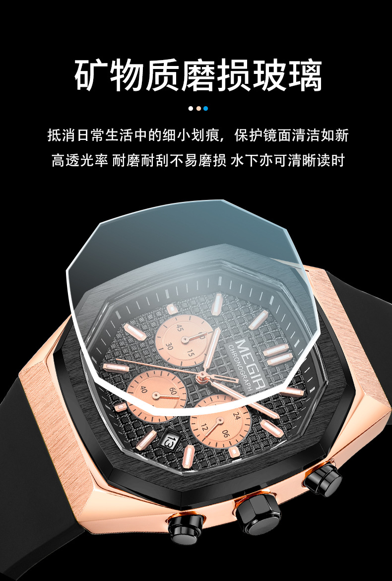 5、防水、防震、防磁的手表,只能起预防作用,在使用时仍须避免与水、磁场接触及强烈震动,以免损坏机芯、影响使用寿命。