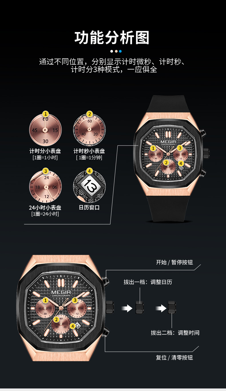 3、防水装置之手表100M以上,后盖锁牙方式,可浸水但不得游泳潜水。