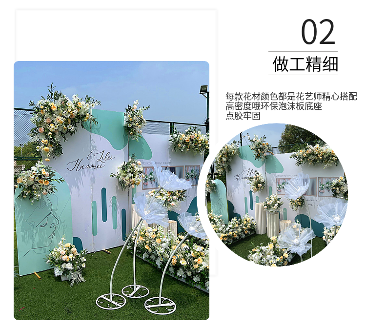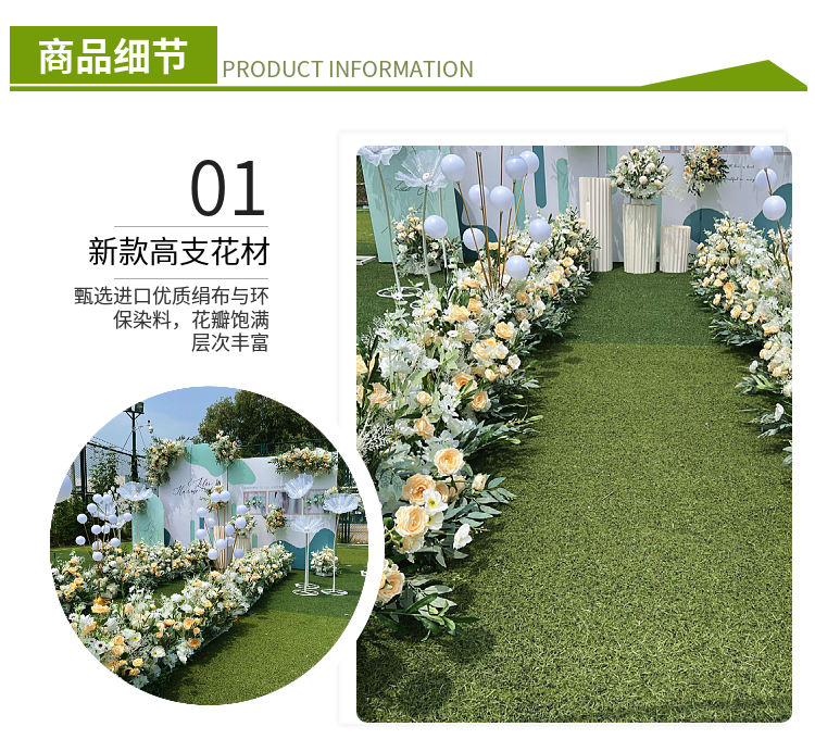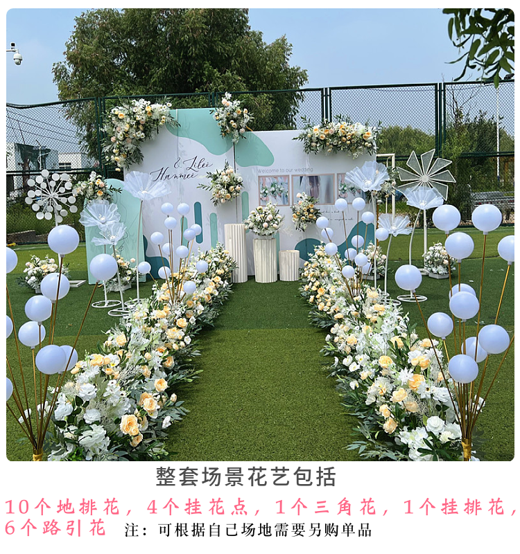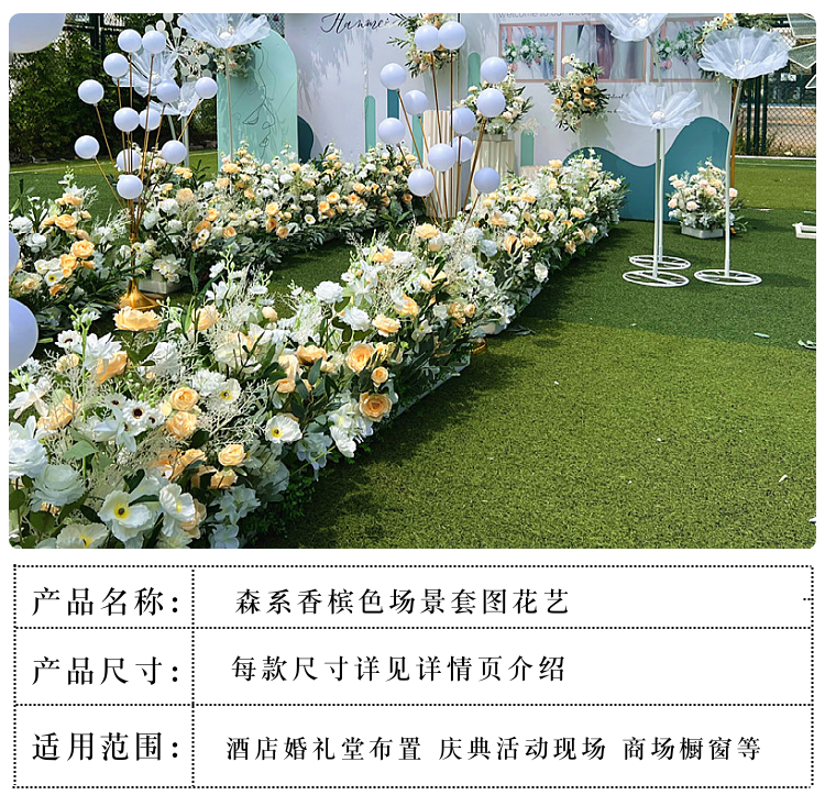 Mới Mori đám cưới mô phỏng hoa trang trí nền đám cưới đường dẫn hàng hoa treo hoa ngoài trời bãi cỏ đám cưới rượu sâm banh hoa