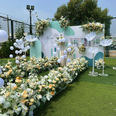 Mới Mori đám cưới mô phỏng hoa trang trí nền đám cưới đường dẫn hàng hoa treo hoa ngoài trời bãi cỏ đám cưới rượu sâm banh hoa