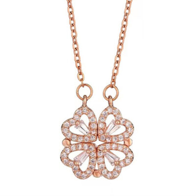 Mới Một Vòng Cổ Trái Tim Hai Lần Đeo Mở Và Đóng Vòng Cổ Cỏ Bốn Lá Thời Trang Nữ Yêu Gấp Chuỗi Xương Đòn Sáng Tạo Bán Buôn