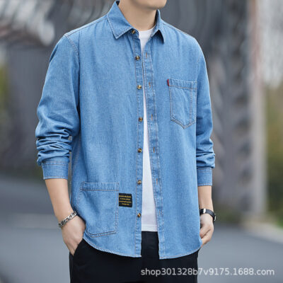 Mới Mùa Xuân Và Mùa Thu Cotton Nguyên Chất Áo Sơ Mi Nam Dài Tay Áo Khoác Rửa Sạch Rời Top Quần Áo Nam Bán Buôn