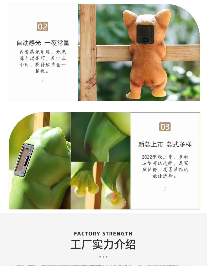 Mới ngoài trời mô phỏng động vật năng lượng mặt trời sân vườn hàng rào sợ hãi nhựa ếch đồ trang trí trang trí là lựa chọn lý tưởng cho không gian công cộng, sân vườn hoặc khu đô thị. Sản phẩm giúp nâng cao hình ảnh chuyên nghiệp và sạch đẹp cho môi trường sống.