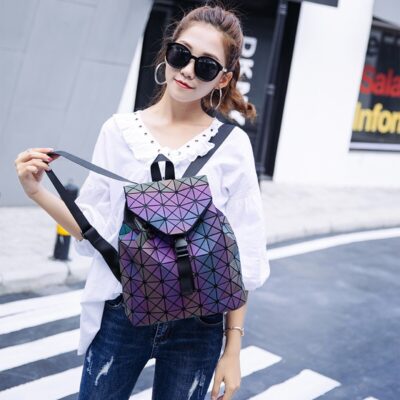 Mới Nhiều Màu Sắc Túi Đeo Vai Nữ Hình Học Hình Thoi Ba Lô Học Sinh Thời Trang Schoolbag Ma Thuật Màu Dạ Quang Điểm