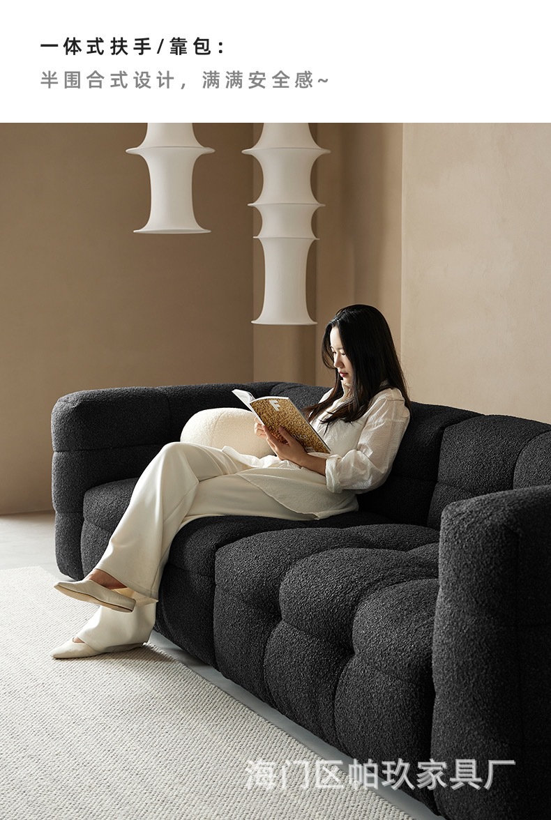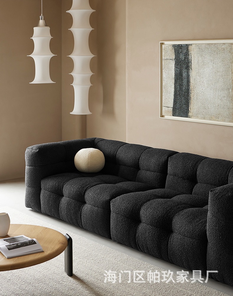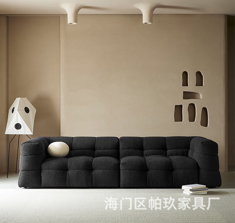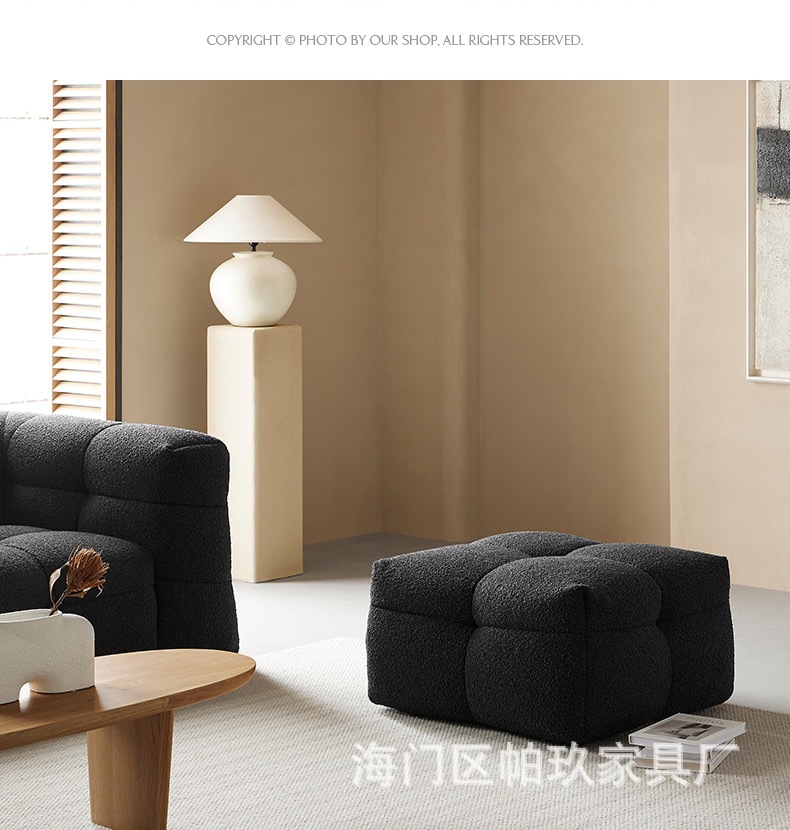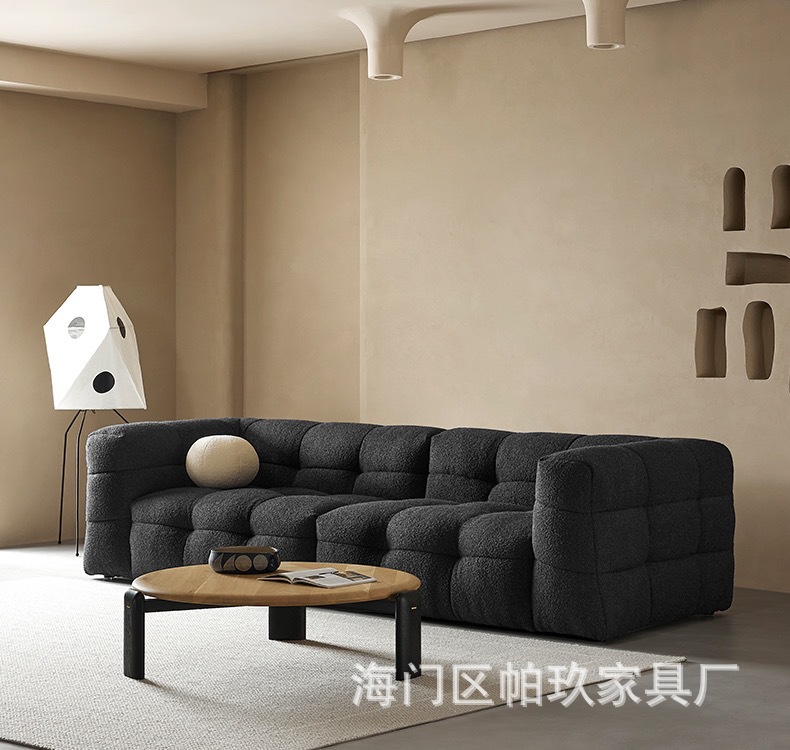 Mới Nhỏ Sách Đỏ BOBA Kẹo Bông Wabi Sabi Phong Cách Retro Thịt Cừu Nhung Nhà Thiết Kế Phòng Khách Vải Đen Bánh Mì Sofa