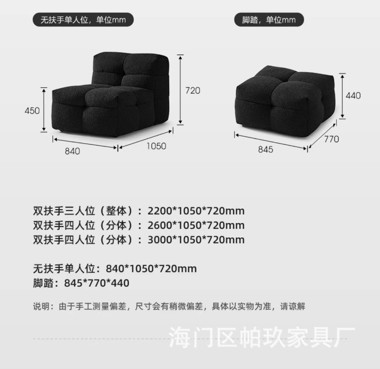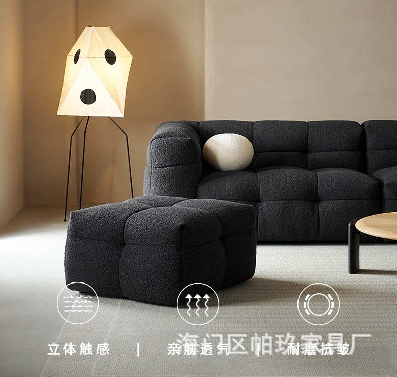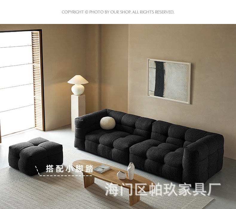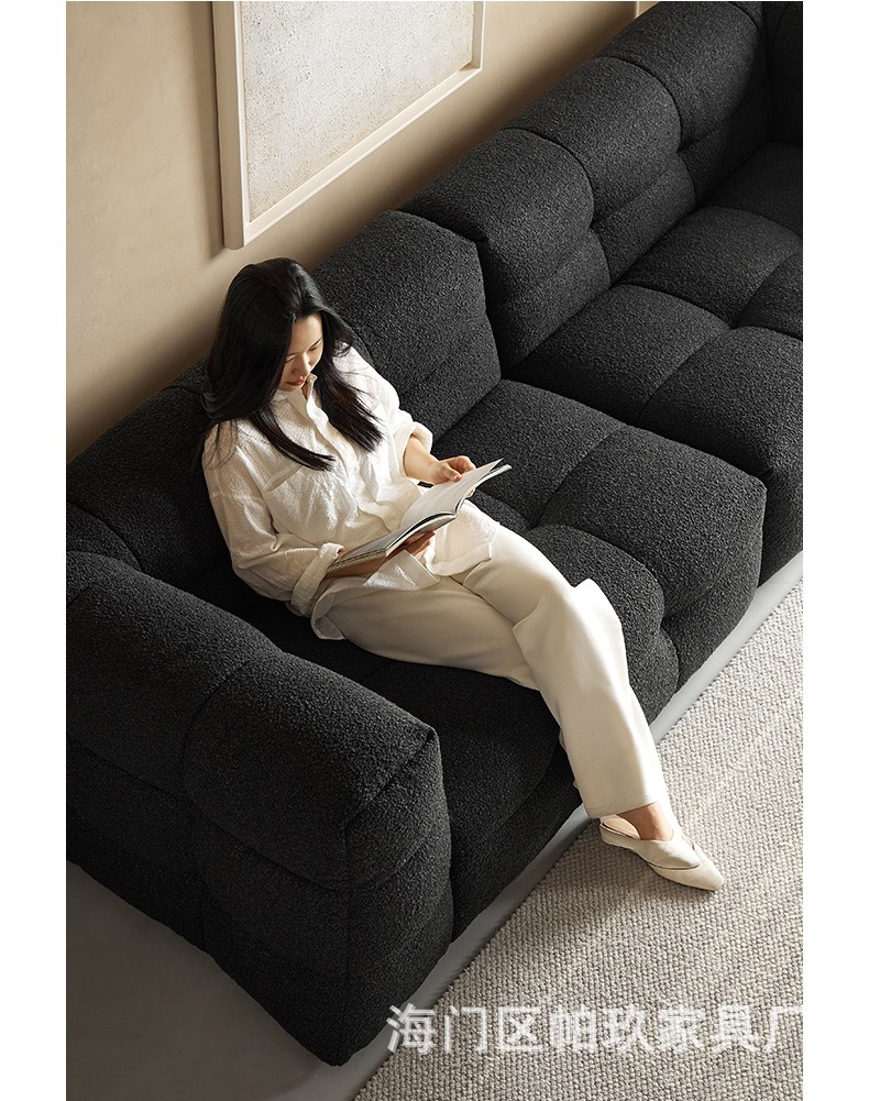 Mới Nhỏ Sách Đỏ BOBA Kẹo Bông Wabi Sabi Phong Cách Retro Thịt Cừu Nhung Nhà Thiết Kế Phòng Khách Vải Đen Bánh Mì Sofa
