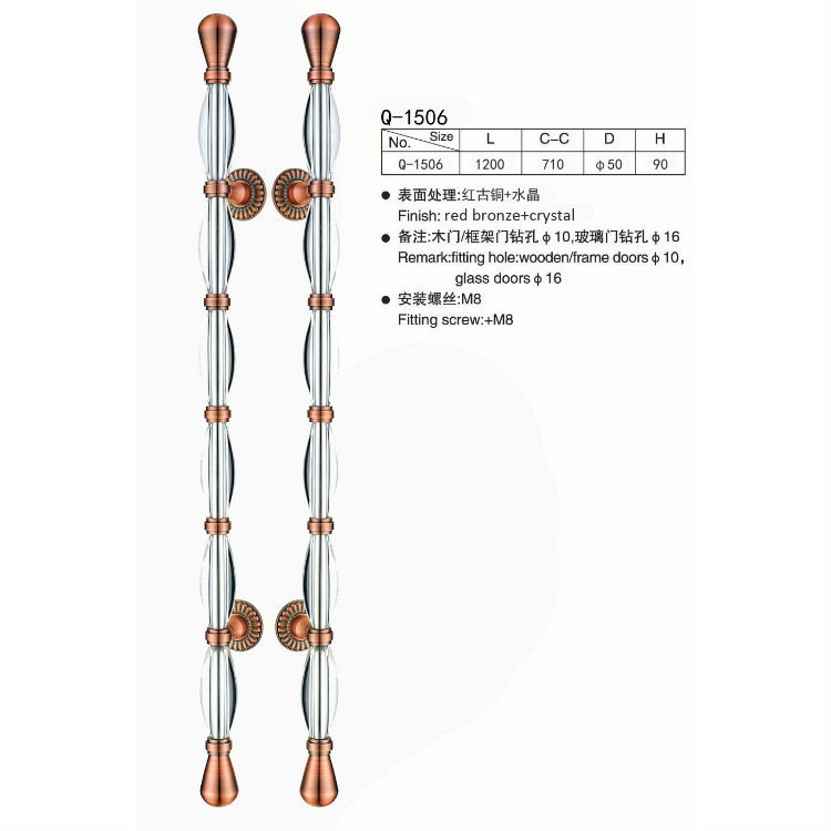 Mã sản phẩm: Q-1506 Nhãn hiệu: Qianxin Màu sắc: Đồng đỏ + Pha lê Mẫu mã: Q-1506 Thông số kỹ thuật: φ51×1200 Ứng dụng sản phẩm: Cửa gỗ, Cửa khung, Cửa kính Các nền tảng hạ nguồn chính: ebay/Amazon/wish/AliExpress/Independent Trạm /LAZADA/Khác/Khác Thương hiệu riêng được ủy quyền: Có Chất liệu: thép không gỉ Xử lý bề mặt: đồng đỏ + xử lý pha lê Tùy chỉnh: Có Cho dù xuất khẩu xuyên biên giới Nguồn cung cấp đặc biệt: Có Khu vực bán hàng chính: Châu Phi/Châu Âu/Nam Mỹ/Đông Nam Á /Bắc Mỹ/Đông Bắc Á/Trung Đông/Khác/Phong cách khác: Mỹ/Trung Quốc mới/Đơn giản hiện đại/Sang trọng nhẹ/Sang trọng nhẹ