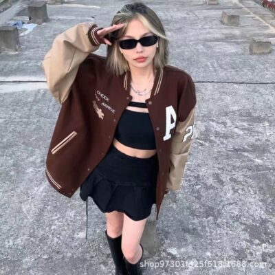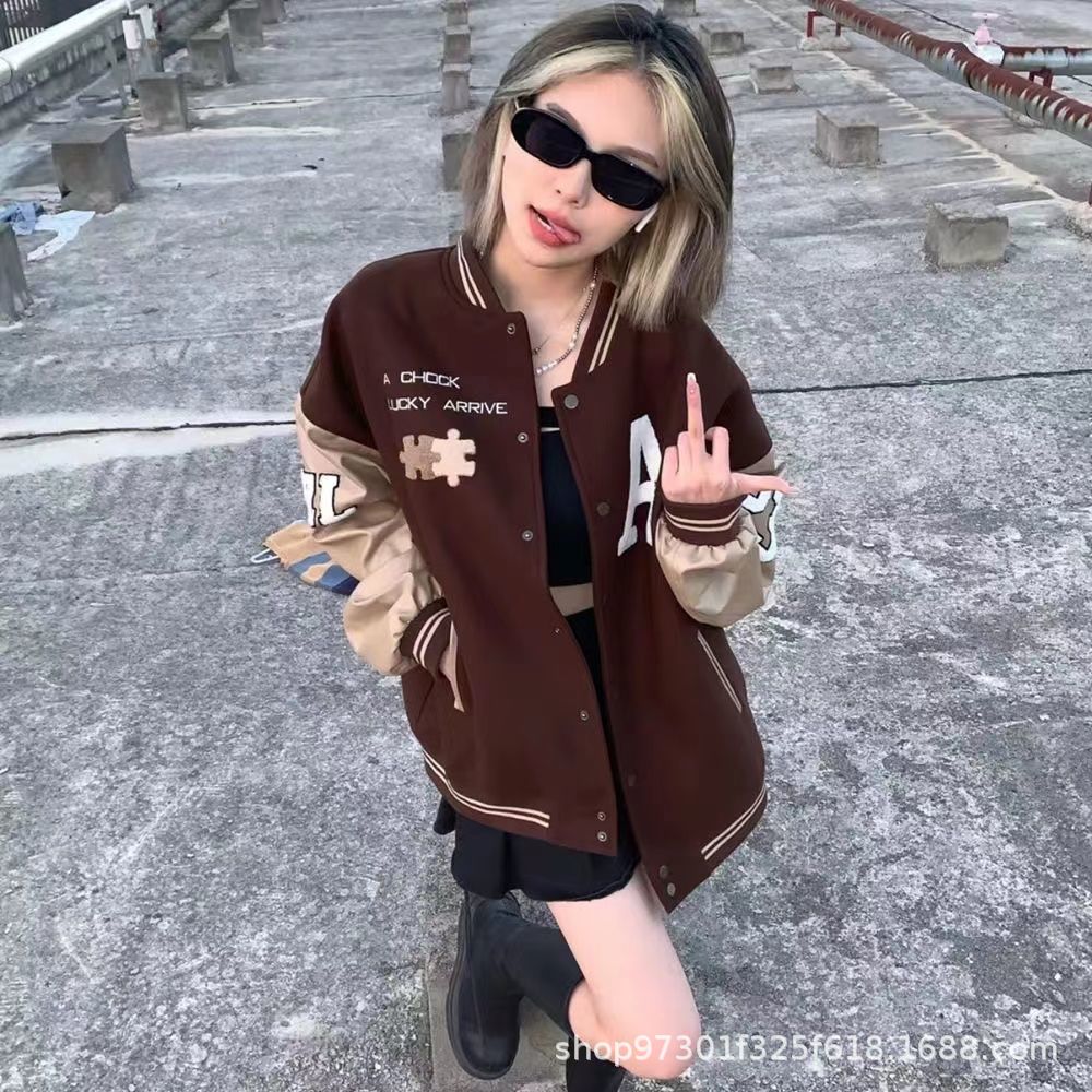 Mới Phong Cách Mỹ Retro Đồng Phục Bóng Chày Nữ Thu Đông Rời Tất Cả Trận Đấu Vintage Khâu PU Áo Khoác Ins triều