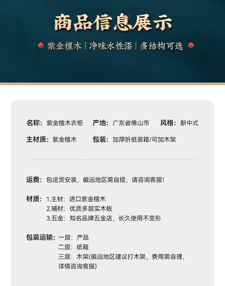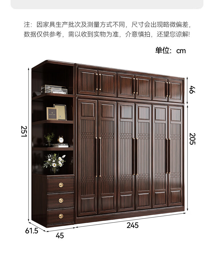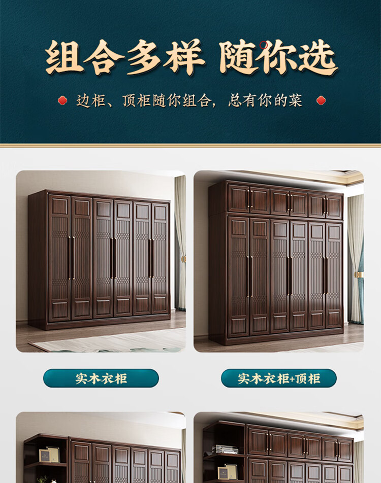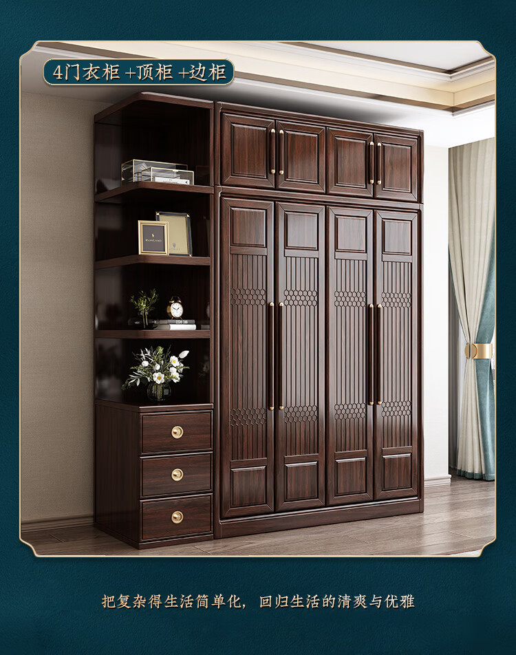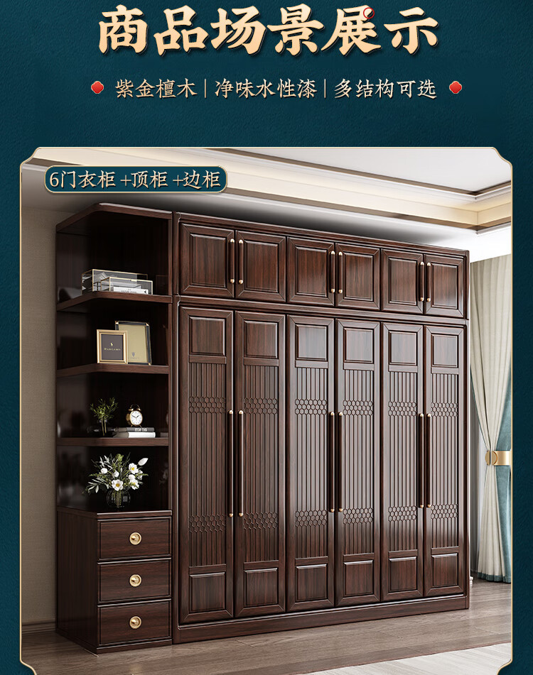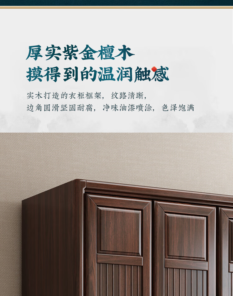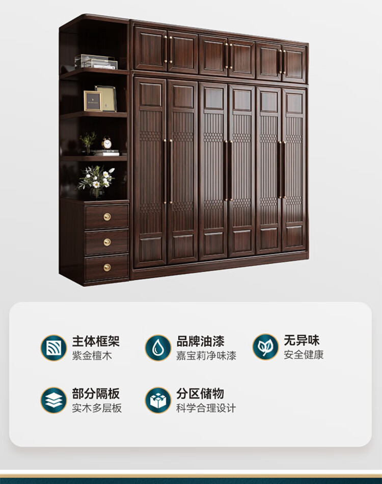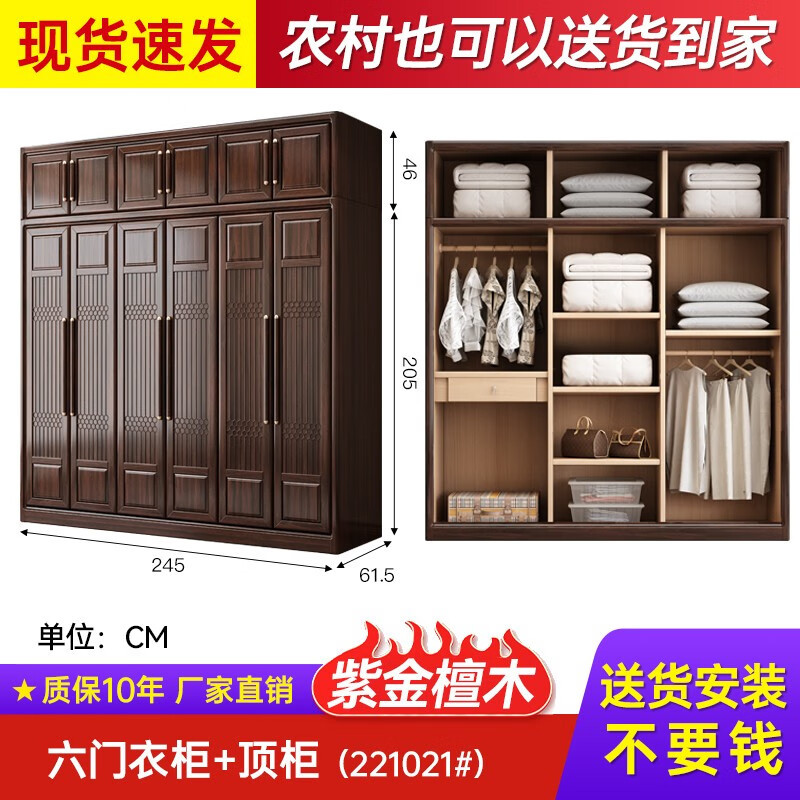 Mới phong cách Trung Hoa màu tím vàng gỗ đàn hương tủ quần áo gỗ nguyên khối đơn giản hiện đại phòng ngủ gia đình tất cả tủ quần áo bằng gỗ nguyên khối tủ đựng đồ