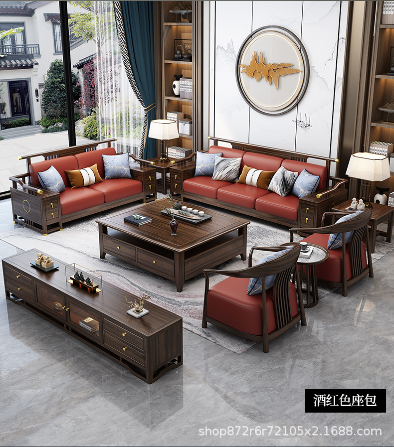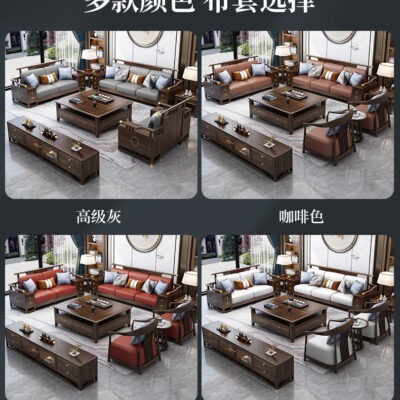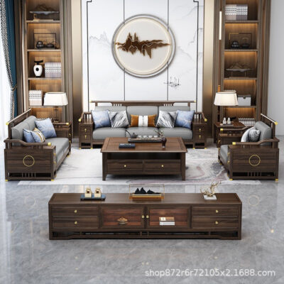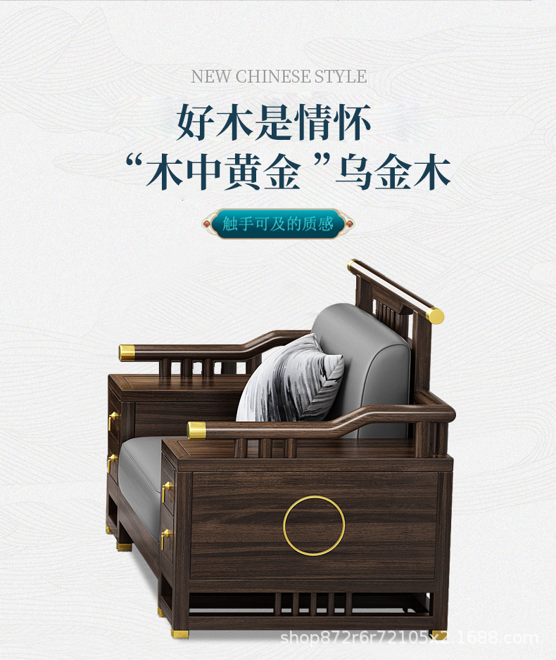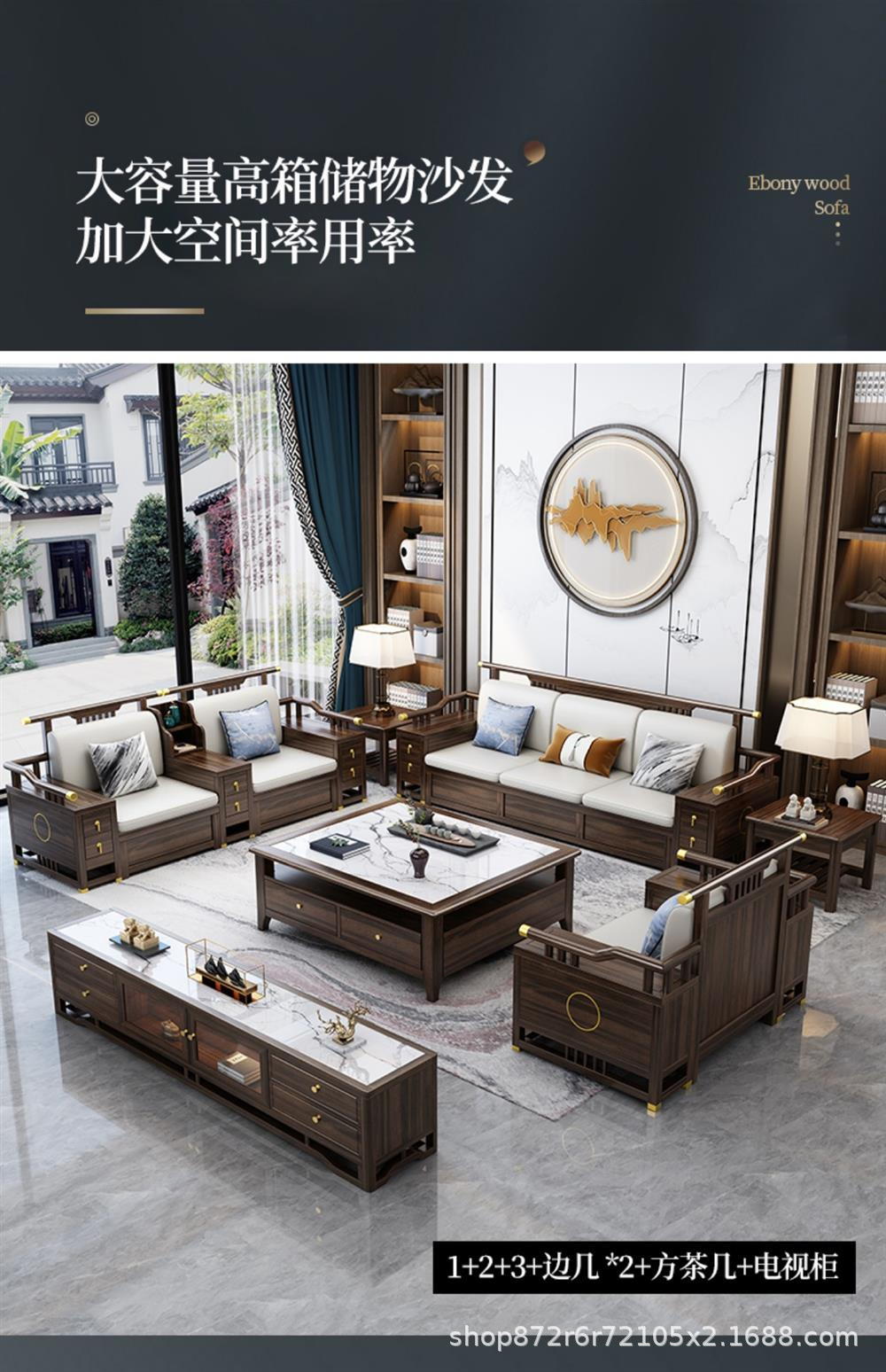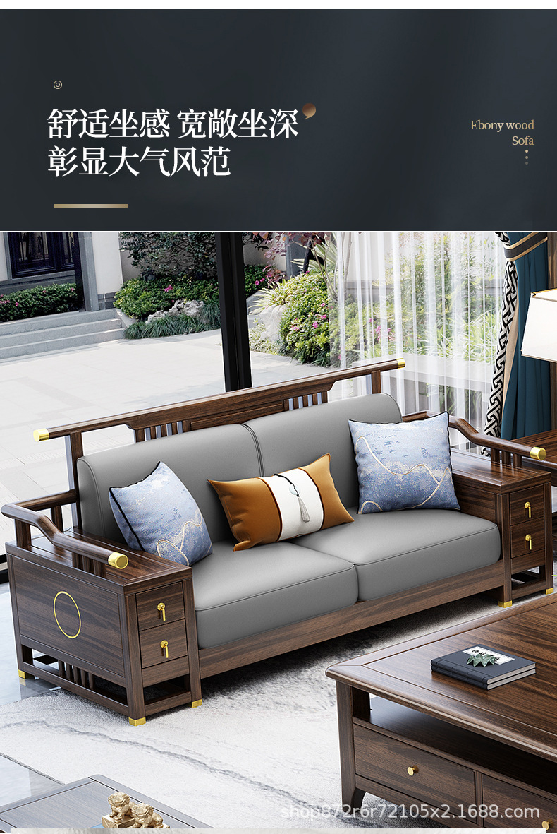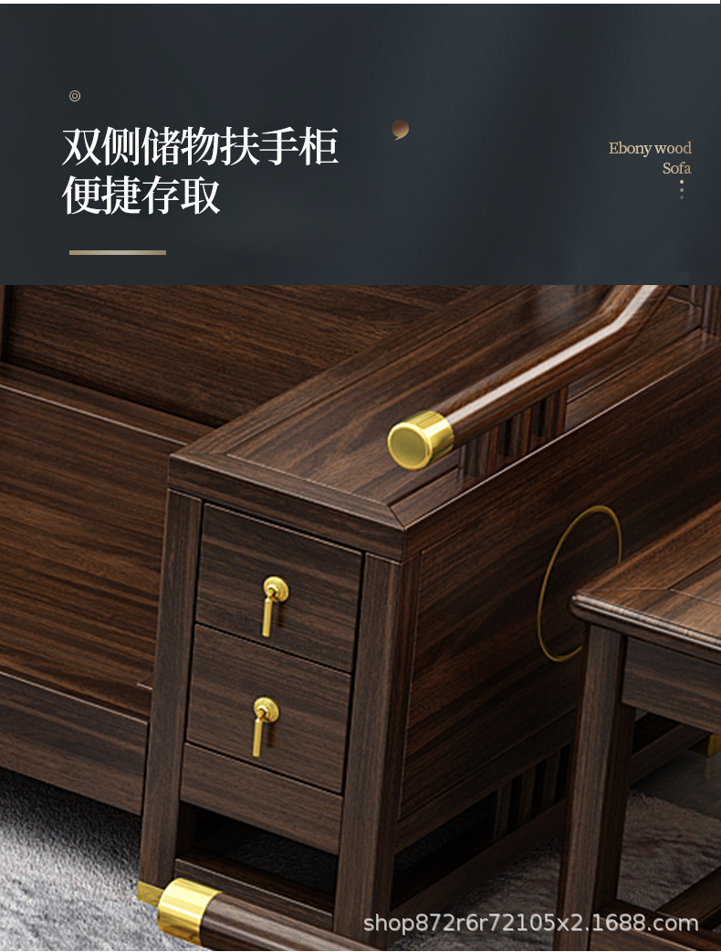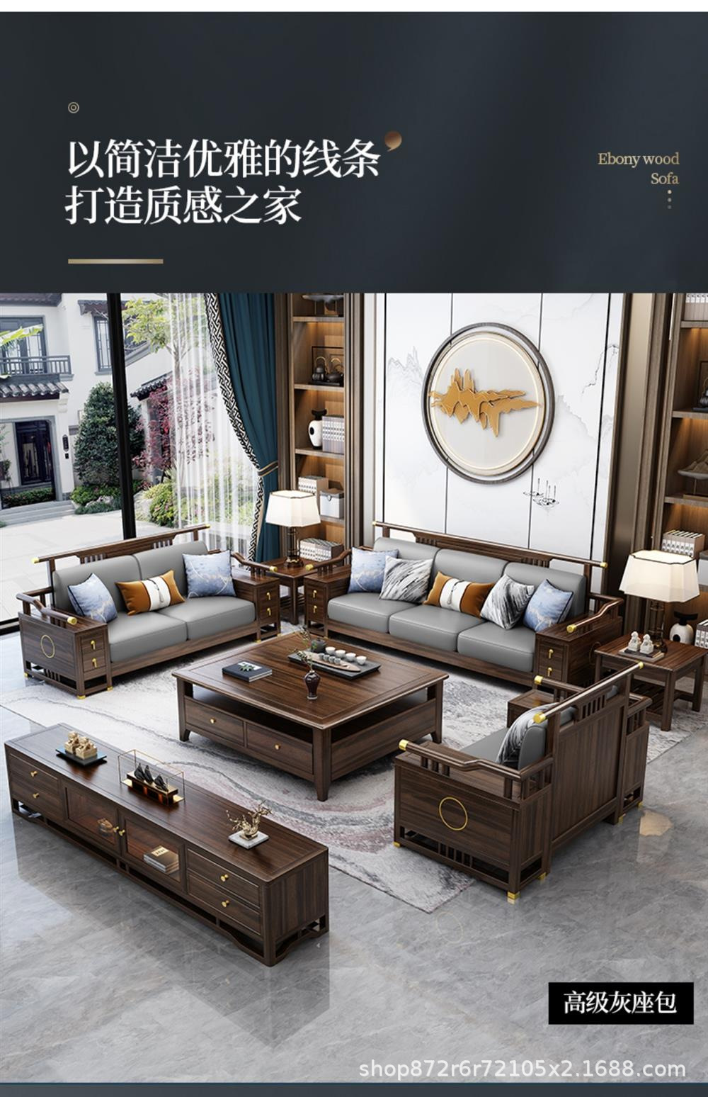 Mới phong cách Trung Quốc gỗ mun gỗ chắc chắn sofa gỗ kết hợp hiện đại kích thước tối giản căn hộ Đẹp sang trọng vải phòng khách bằng gỗ bộ