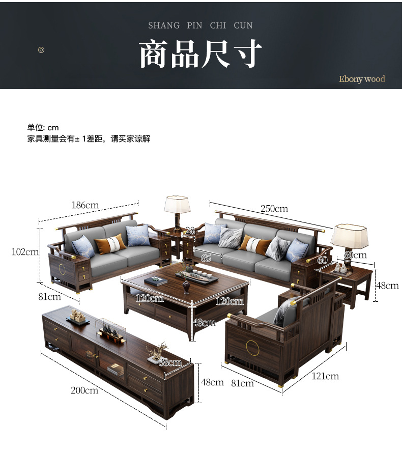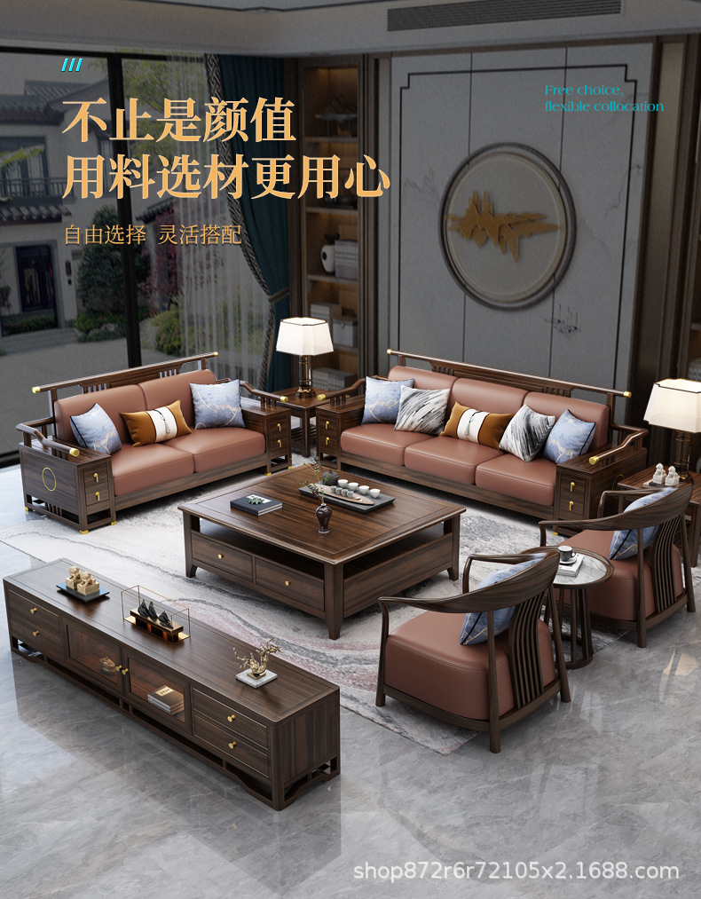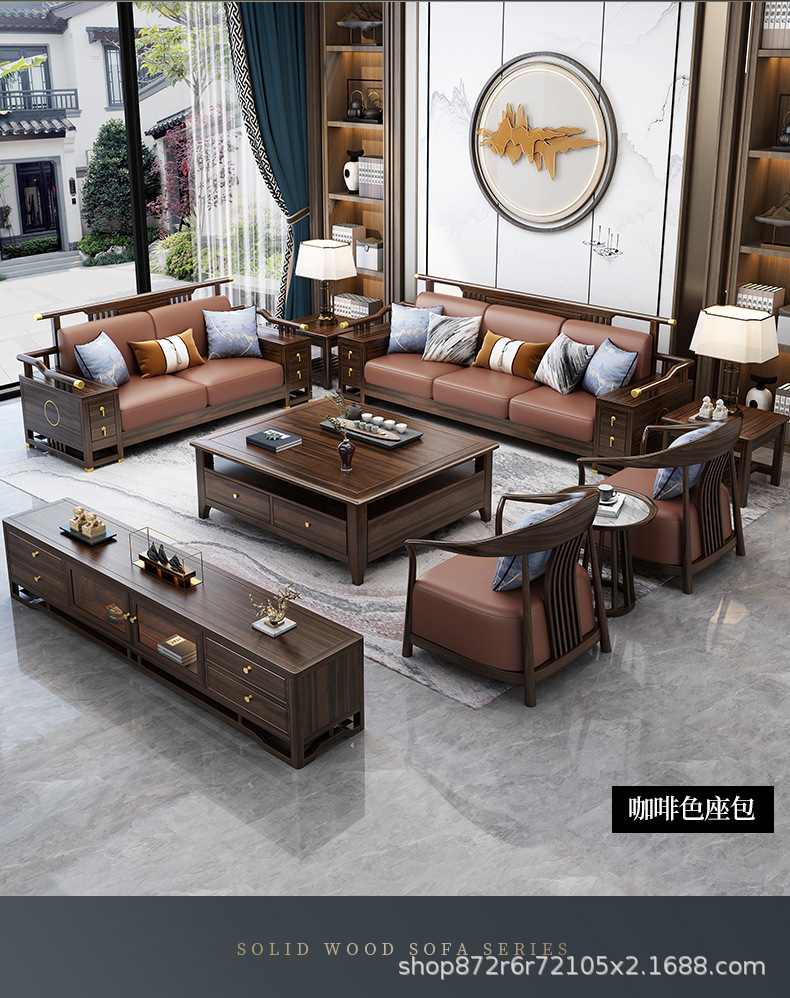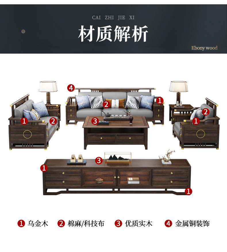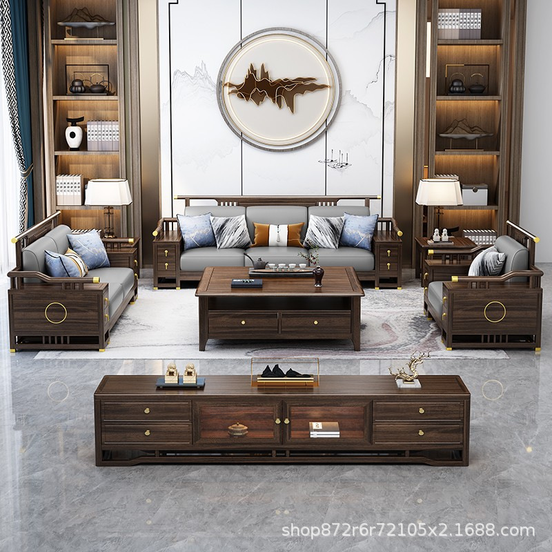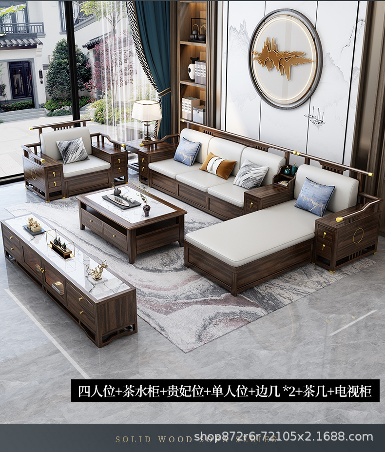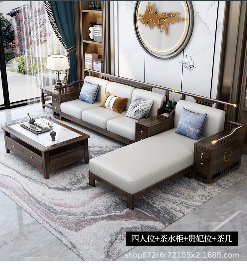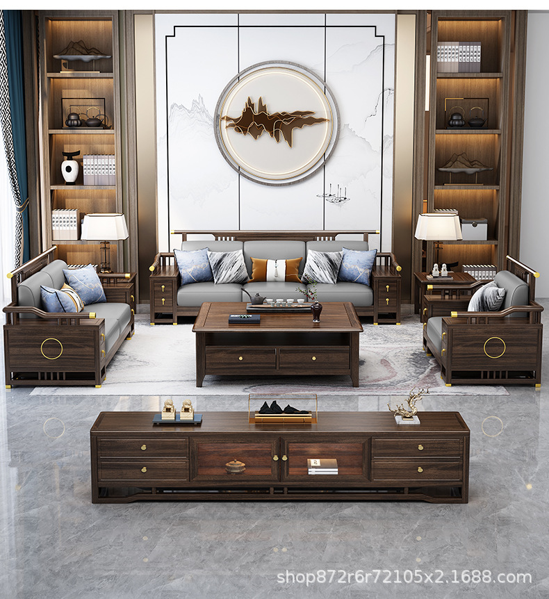 Mới phong cách Trung Quốc gỗ mun gỗ chắc chắn sofa gỗ kết hợp hiện đại kích thước tối giản căn hộ Đẹp sang trọng vải phòng khách bằng gỗ bộ