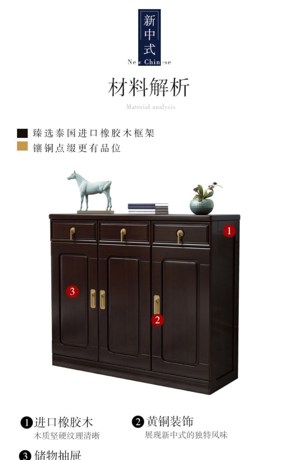 Mới phong cách Trung Quốc tủ giày gỗ chắc chắn lối vào nhà phòng khách hiên tủ bằng gỗ hiện đại 3 cửa nhẹ tủ đựng đồ sang trọng
