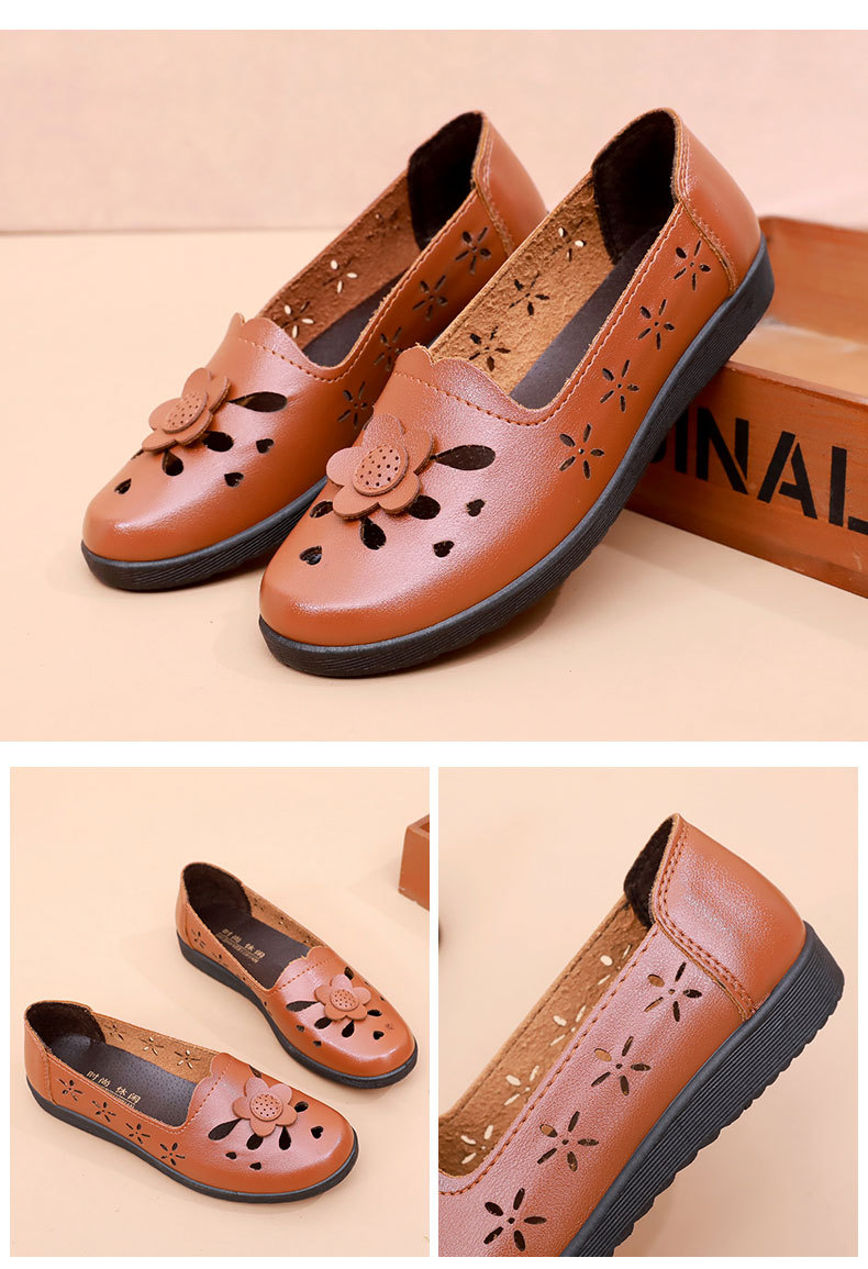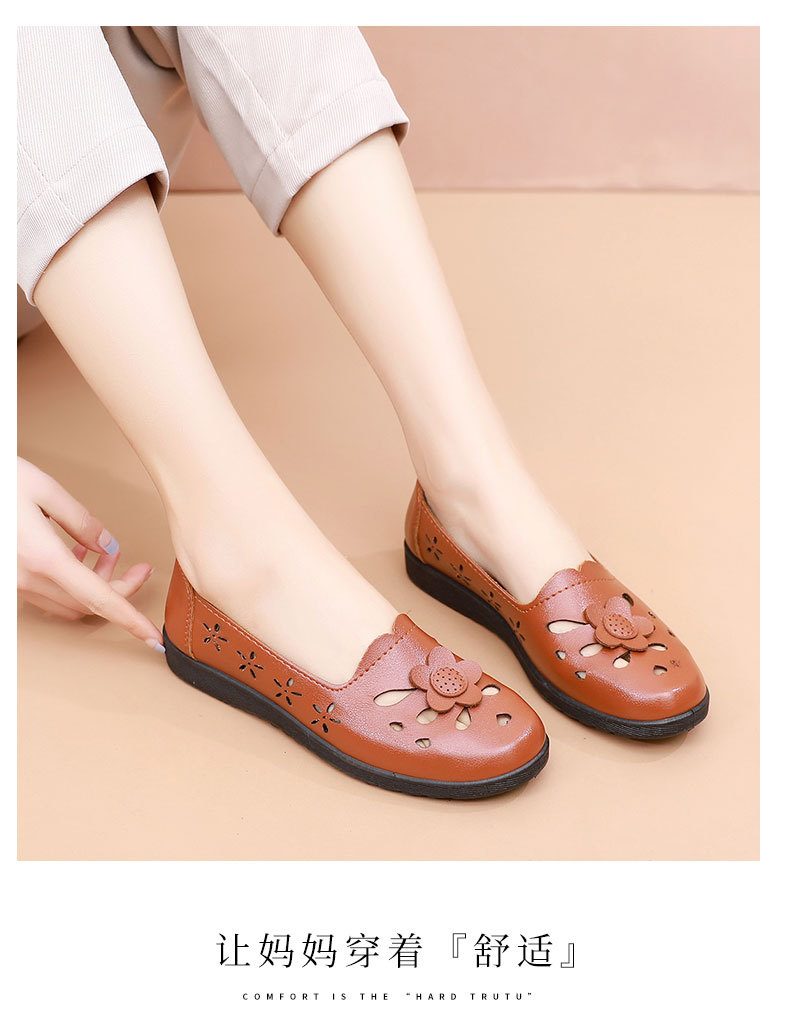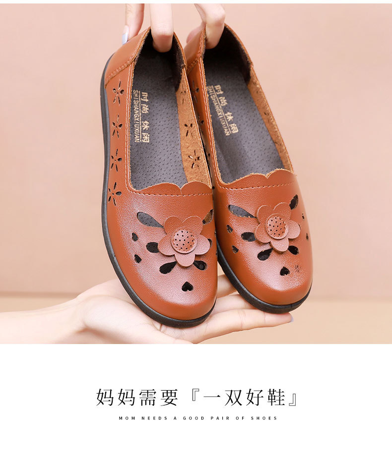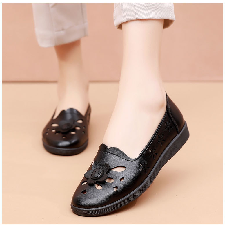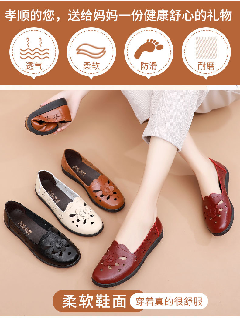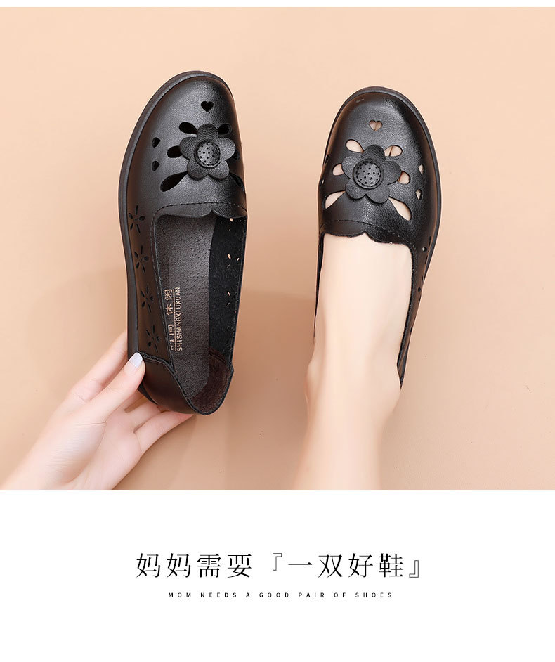 Mới rỗng giày mẹ đế mềm thoải mái giày phụ nữ trung niên và cao tuổi giày da cao tuổi bà giày đơn mùa hè dép xỏ lỗ
