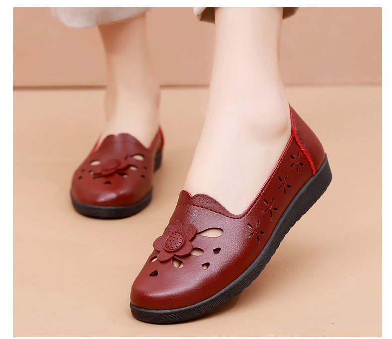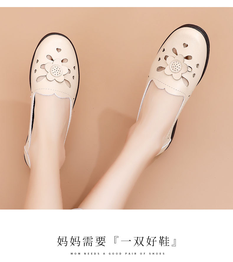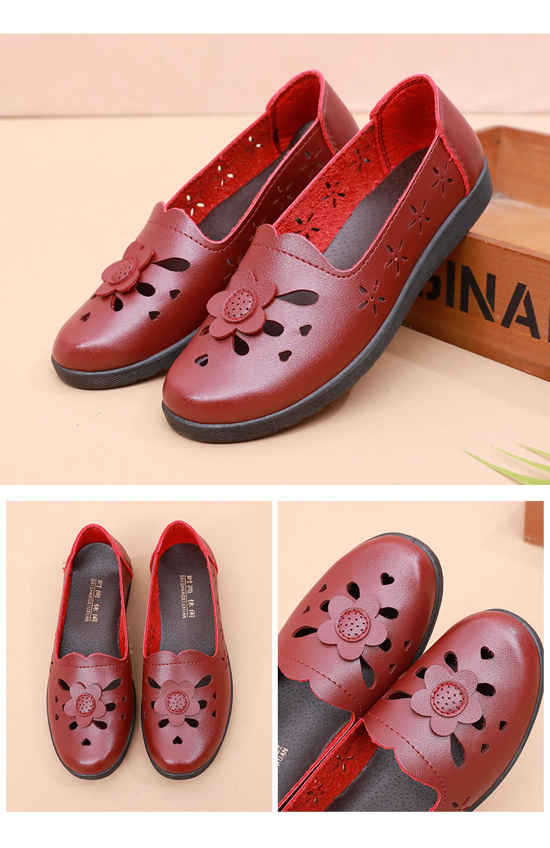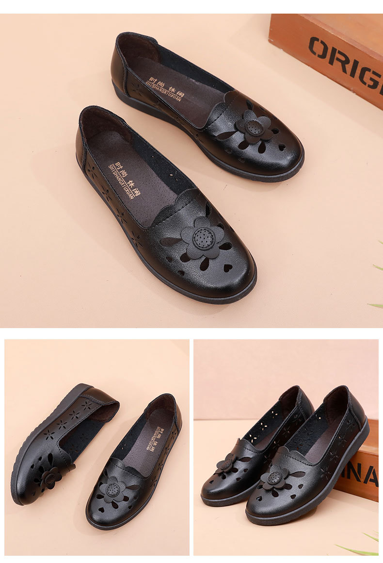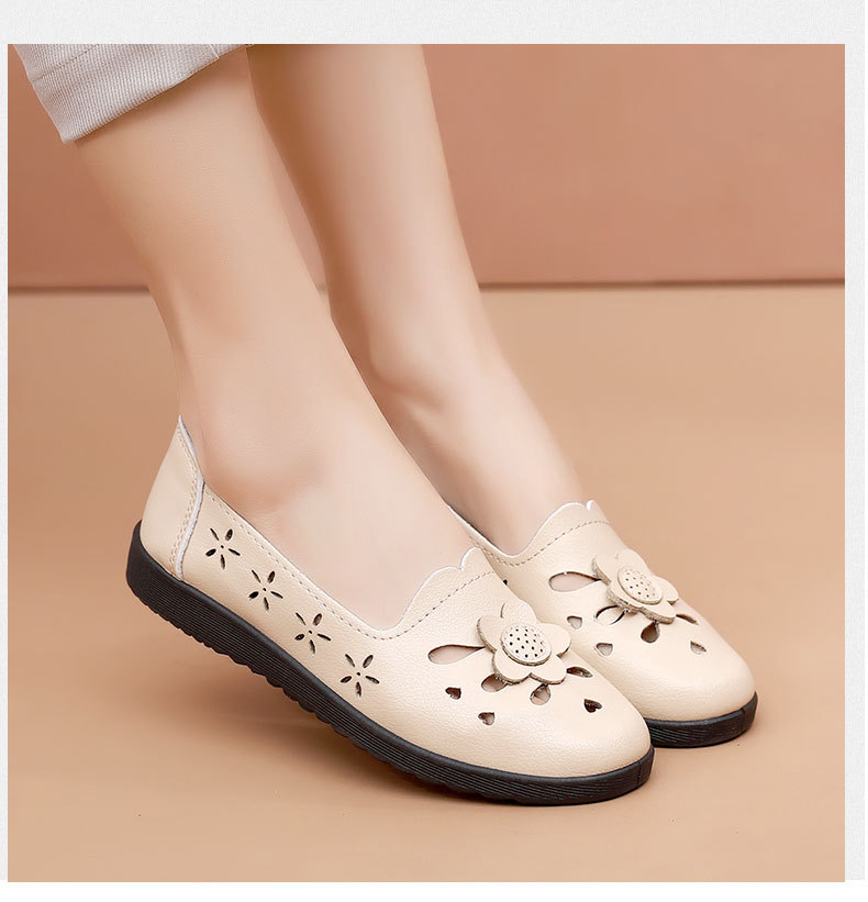 Mới rỗng giày mẹ đế mềm thoải mái giày phụ nữ trung niên và cao tuổi giày da cao tuổi bà giày đơn mùa hè dép xỏ lỗ