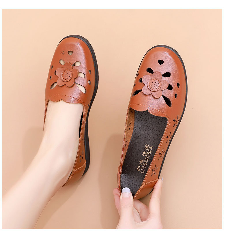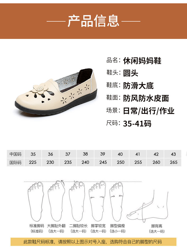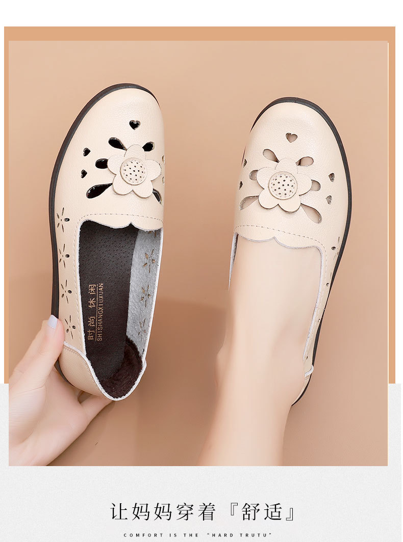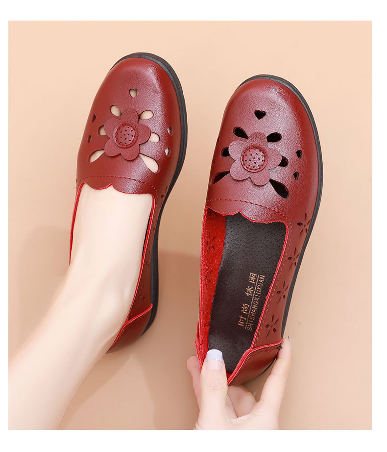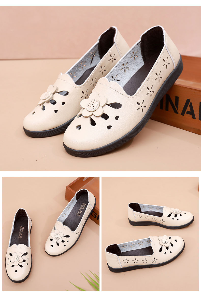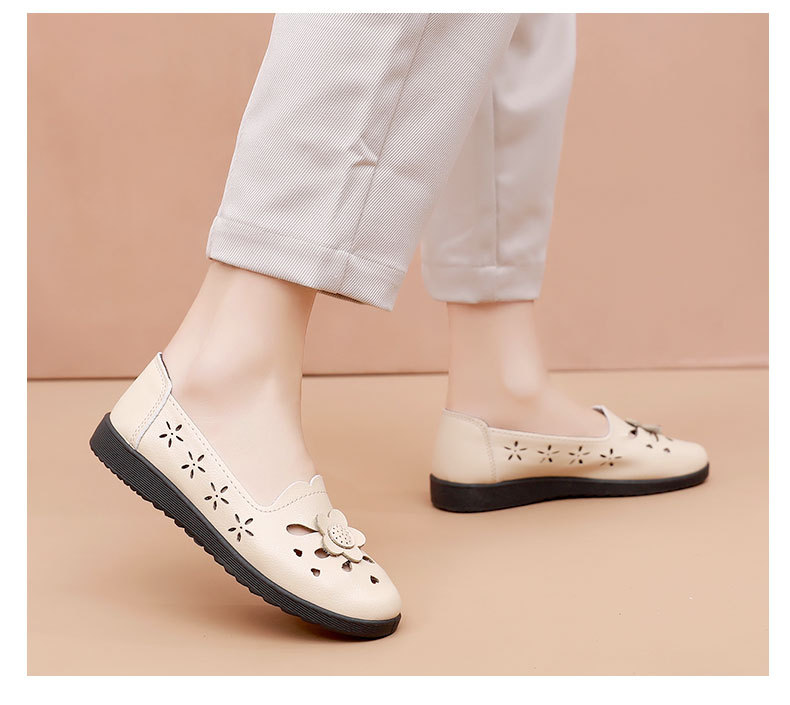 Mới rỗng giày mẹ đế mềm thoải mái giày phụ nữ trung niên và cao tuổi giày da cao tuổi bà giày đơn mùa hè dép xỏ lỗ