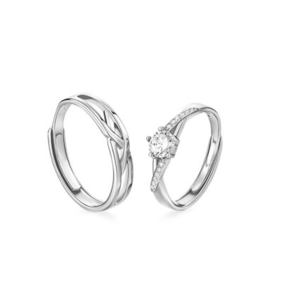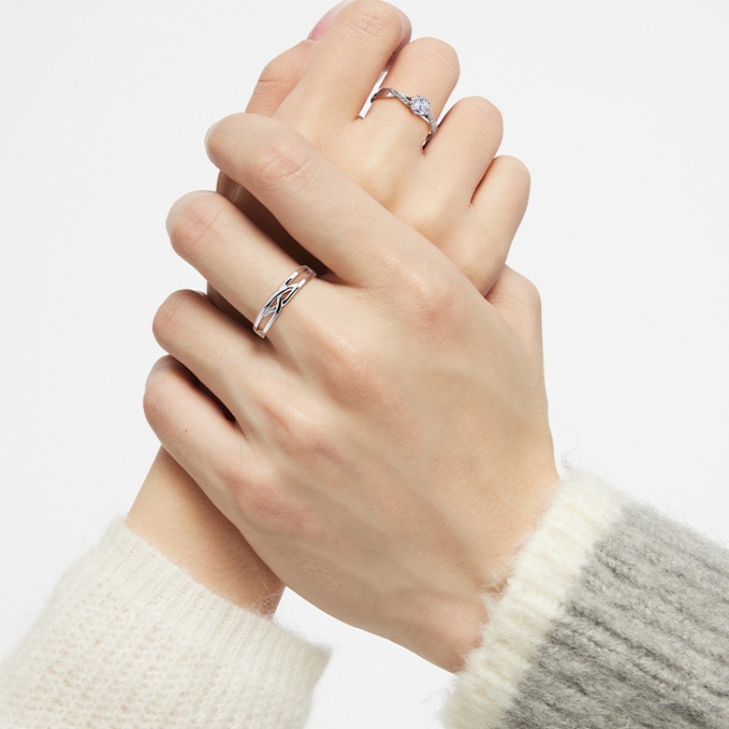 Mới S925 bạc đan xen tình yêu nhẫn đôi thiết kế thích hợp nam nữ nhẫn đôi Ngày Lễ Tình Nhân ánh sáng trang sức bạc sang trọng