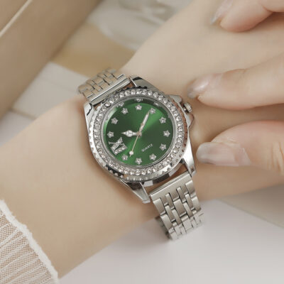 Mới Thời Trang Nạm Kim Cương Dây Thép Nữ Dây Đơn Giản Tính Khí Đầy Sao Thạch Anh Đồng Hồ Nữ