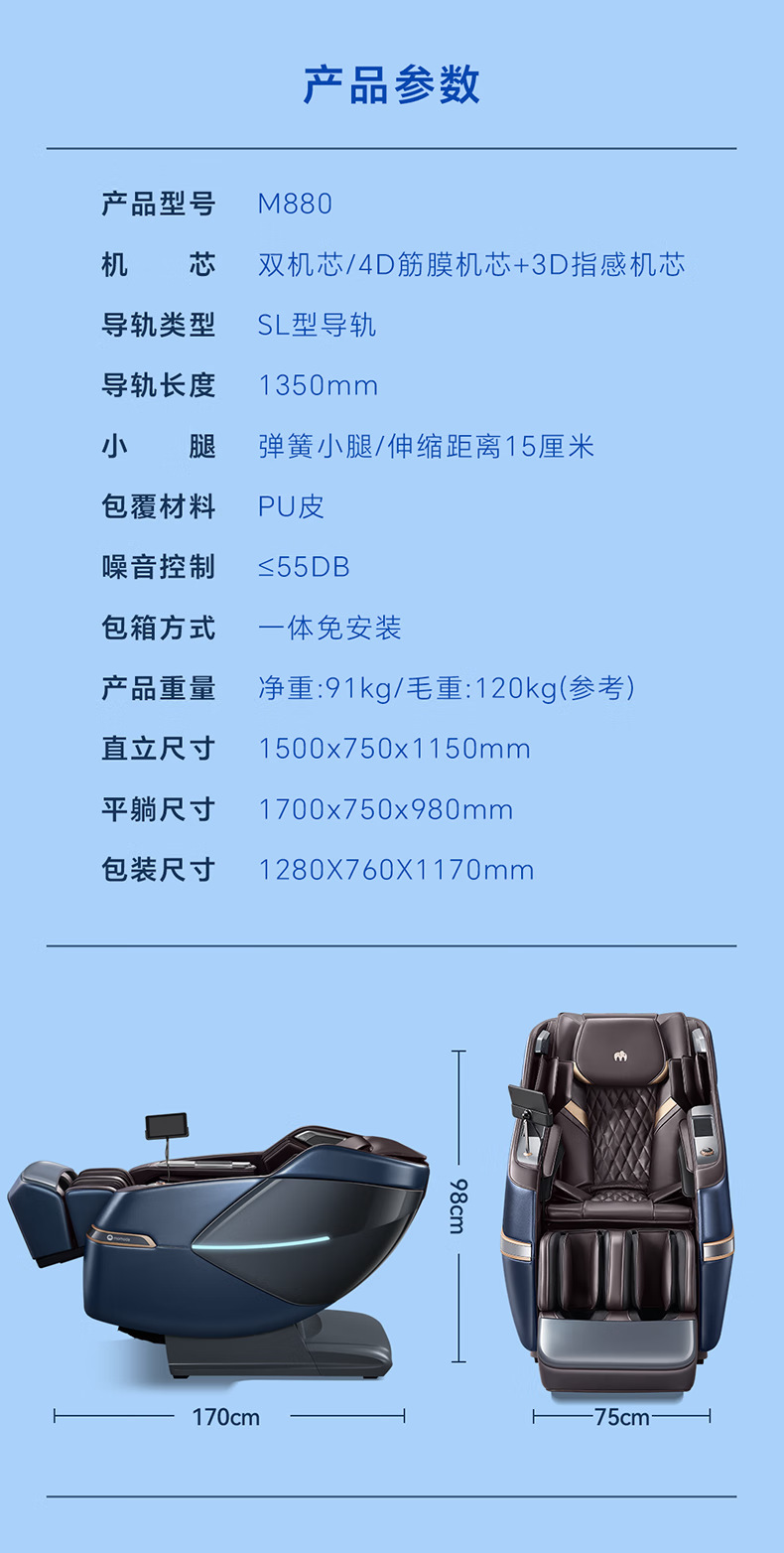 Thương hiệu: Momoda Loại chuyển động: Massage thao tác 3D Cho dù điều khiển thông minh: Không Danh mục sản phẩm: Ghế massage thương mại Chức năng: Chức năng hẹn giờ/âm nhạc/Điều khiển dây cầm tay/Điều khiển dây cầm tay Màu sắc: Trắng ngọc trai M880/Xanh tinh vân M880/Tinh vân M880 Vải màu xanh: Da PU Loại đường ray: Đường ray SL Phương pháp lắp đặt: Số lượng túi khí cần lắp đặt: 61 trở lên Nguyên lý massage: Rung/đập/nén nóng/áp suất khí/túi khí/mát-xa/vỗ/nhào/nhào