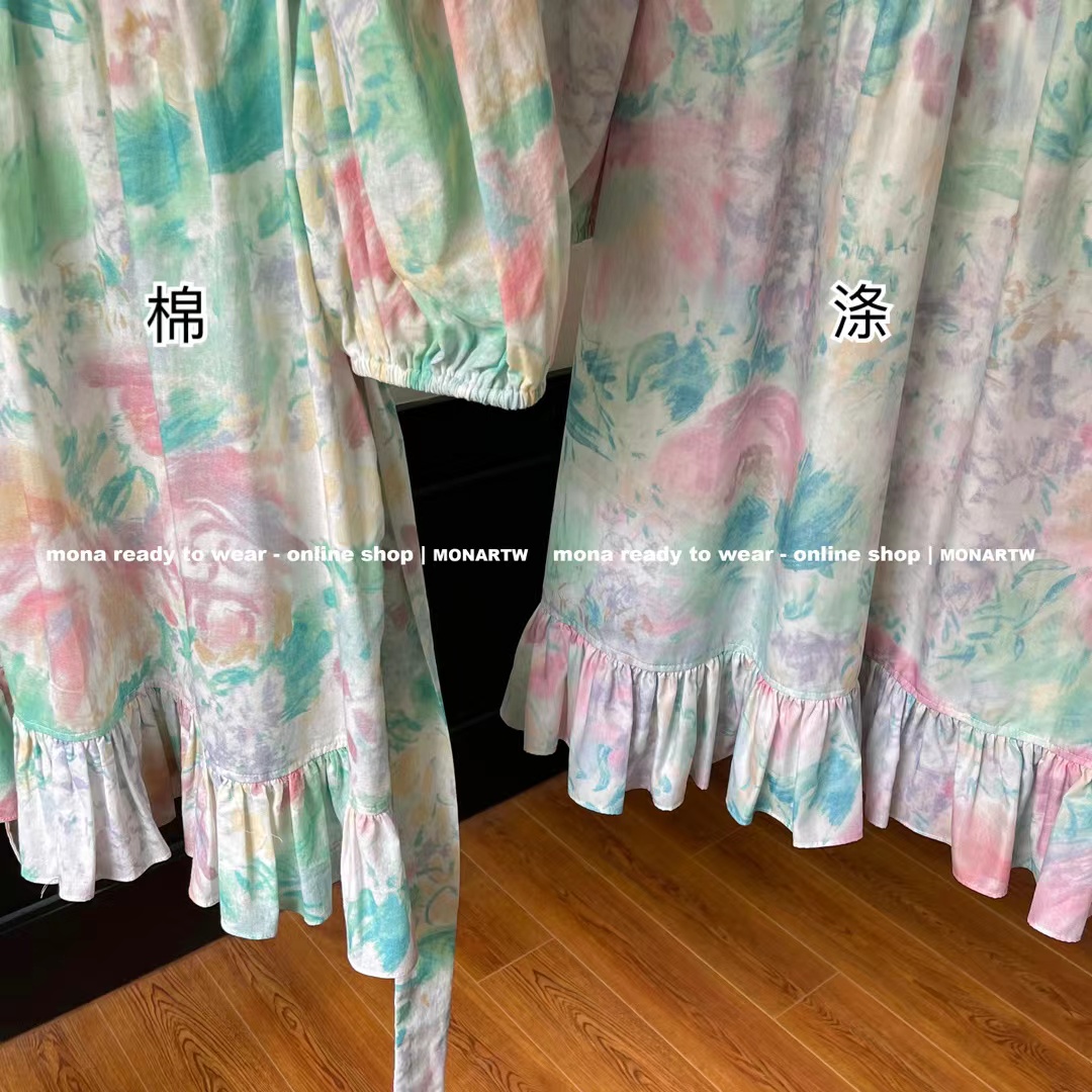 MONA 5/2 Vẻ đẹp mới của Pháp Tea Break Floral Gentle Wind Dress Short Women 2022 Summer