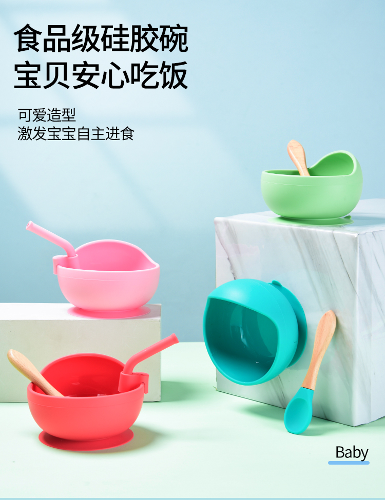Morandi trẻ em đĩa silicon thức ăn cho bé bổ sung bát 1 chống rơi hút cho ăn bộ đồ ăn silicone bộ bát