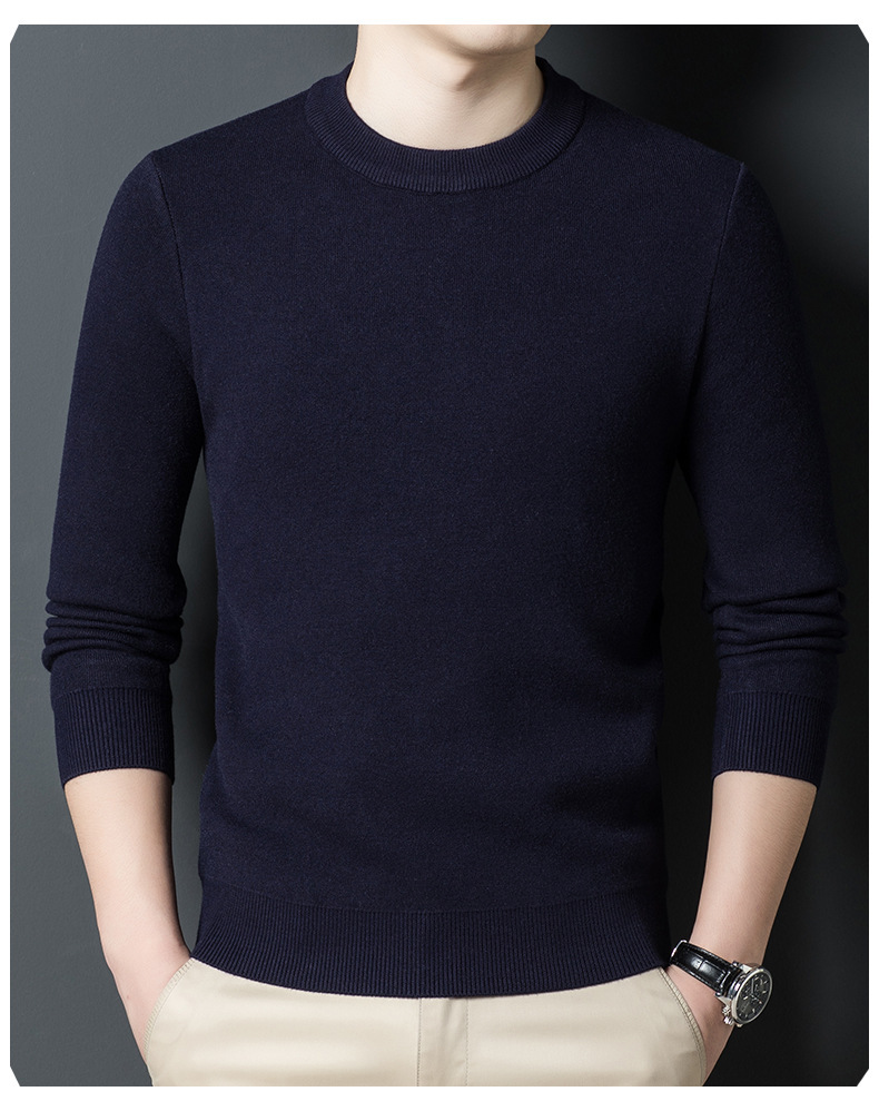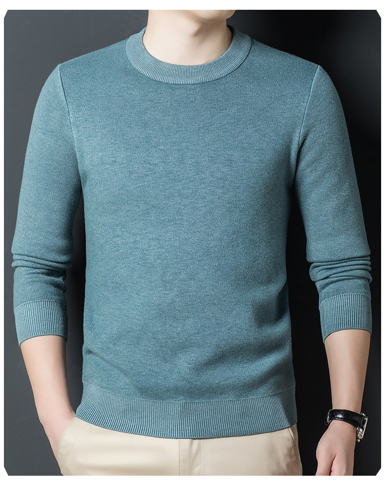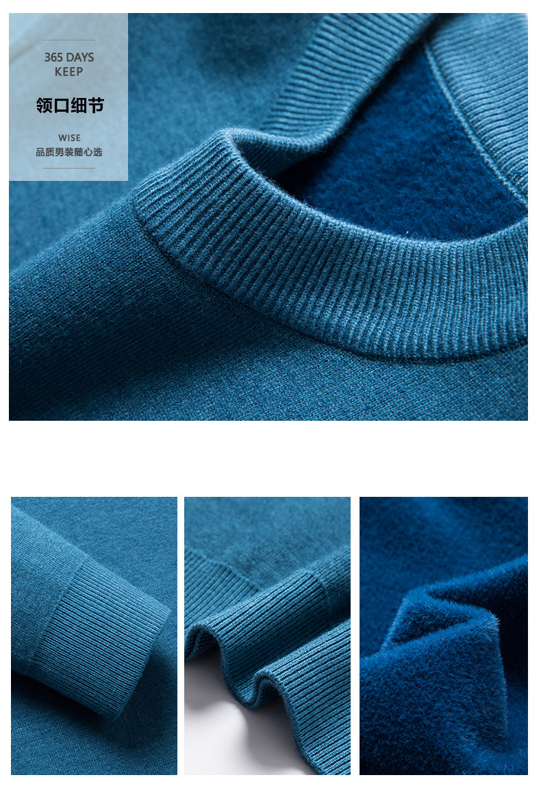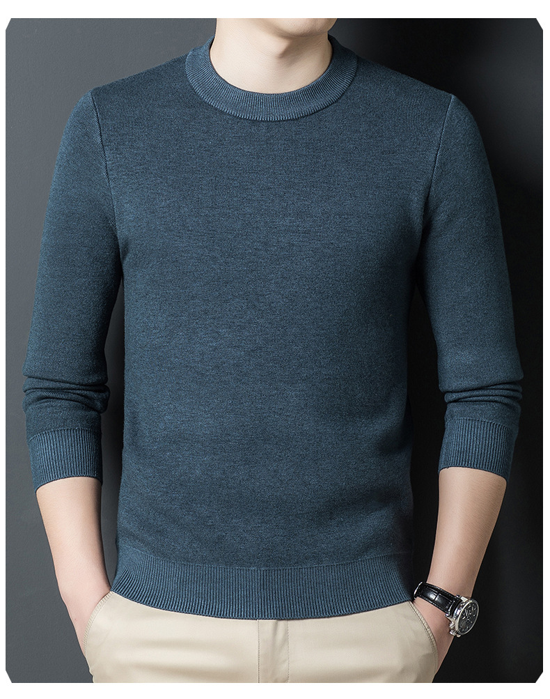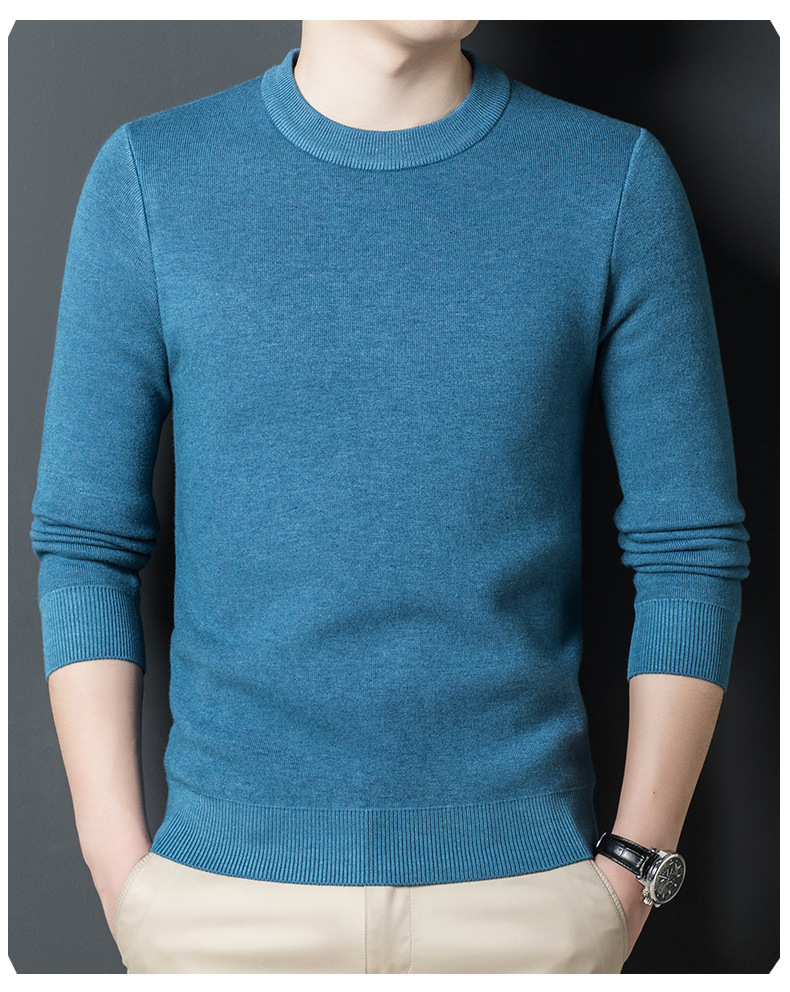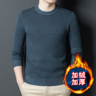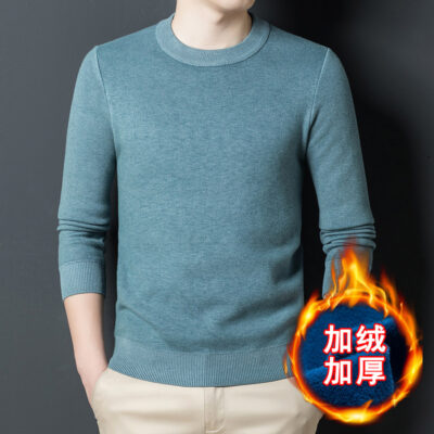 Một chiếc áo len dệt kim nam cổ tròn nhung phiên bản Hàn Quốc Slim Plus nhung dày đáy áo len chui đầu tóc nam