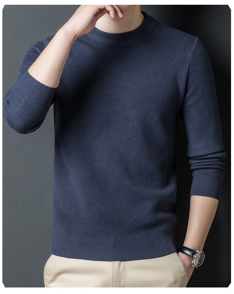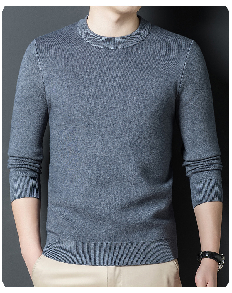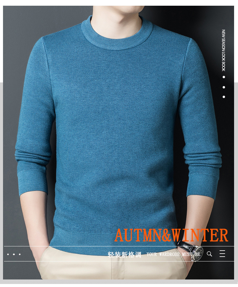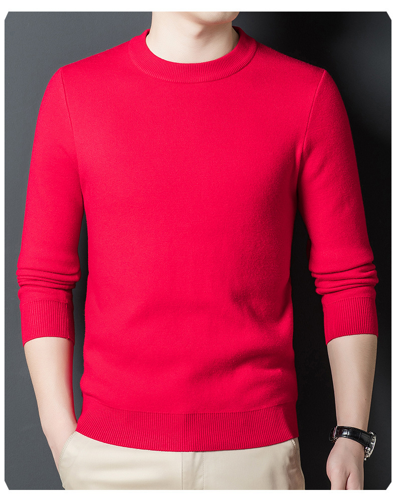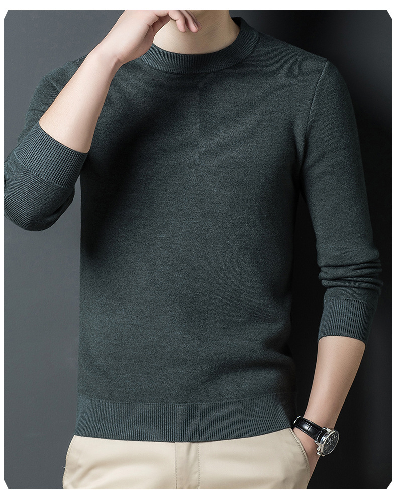 Một chiếc áo len dệt kim nam cổ tròn nhung phiên bản Hàn Quốc Slim Plus nhung dày đáy áo len chui đầu tóc nam