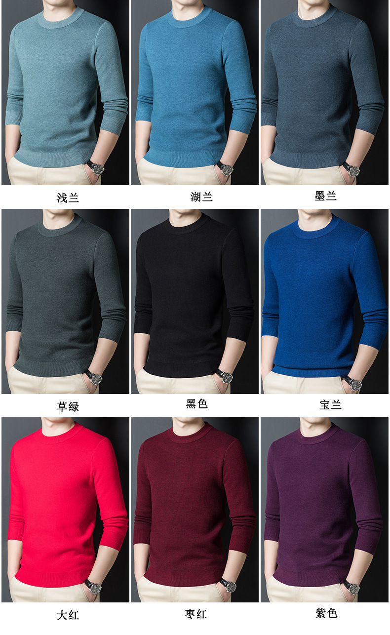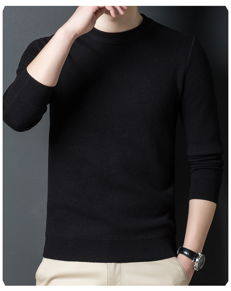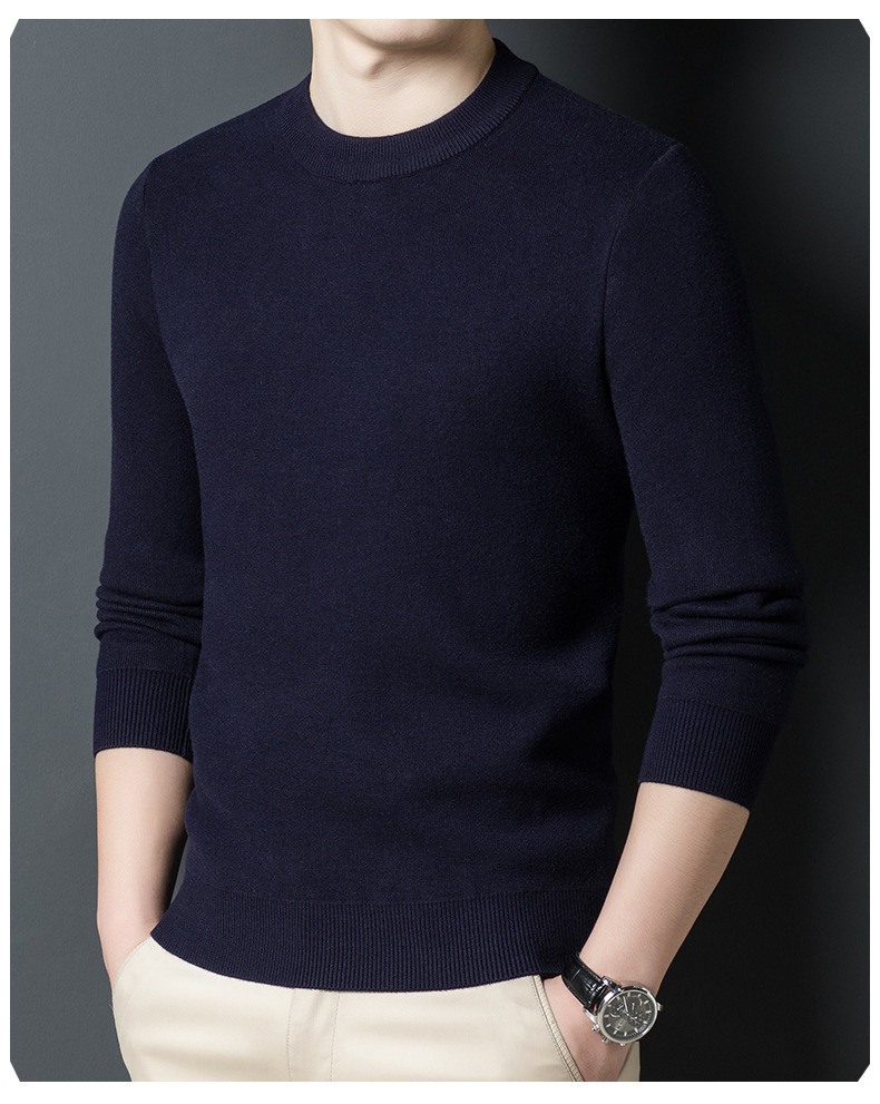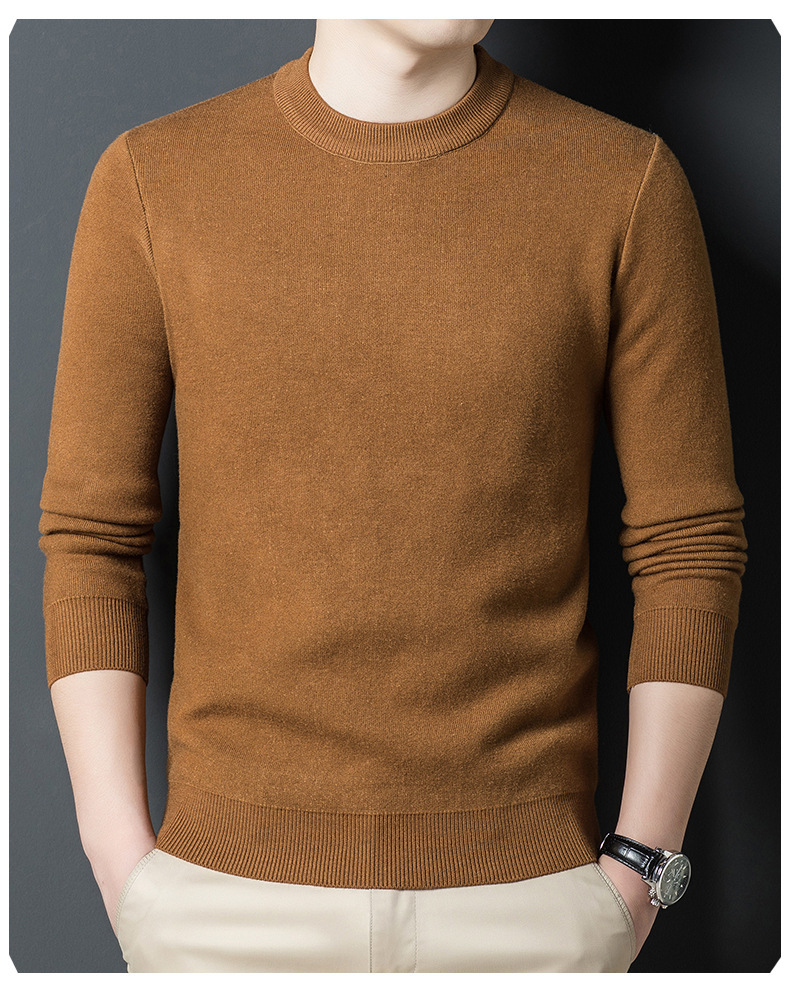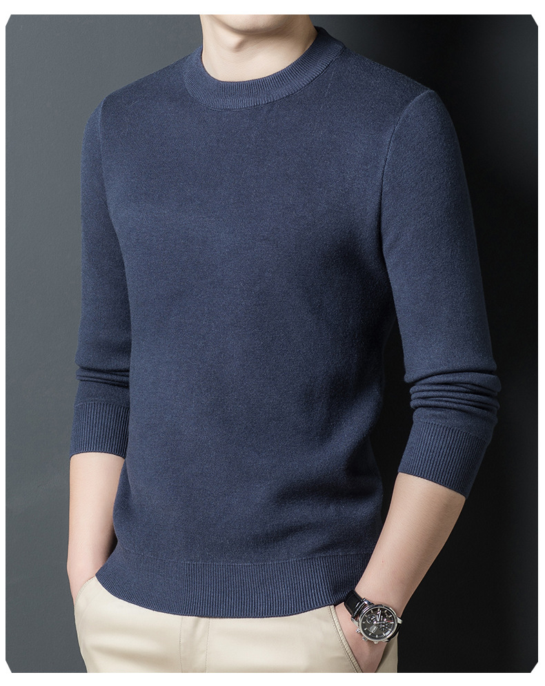 Một chiếc áo len dệt kim nam cổ tròn nhung phiên bản Hàn Quốc Slim Plus nhung dày đáy áo len chui đầu tóc nam