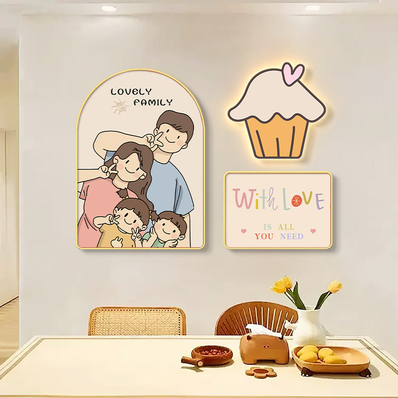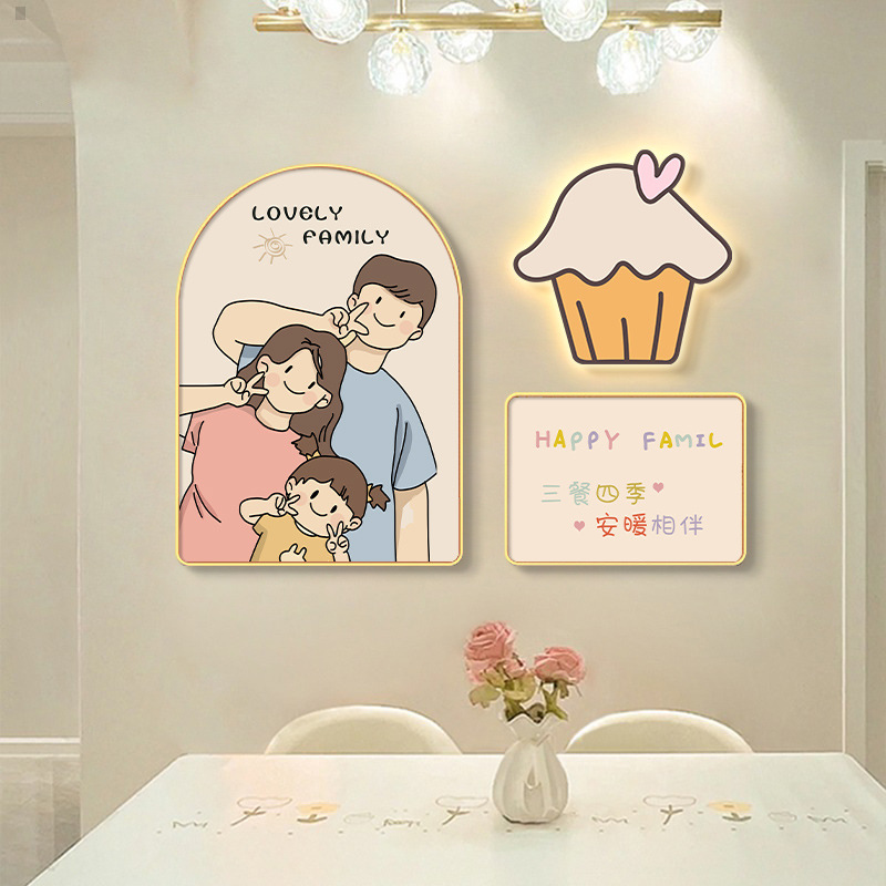 Một gia đình ba hoặc bốn nhà hàng tranh trang trí phòng ăn ấm áp Nhật Bản nền tường bức tranh tường Bàn ăn Bắc Âu kết hợp treo tranh
