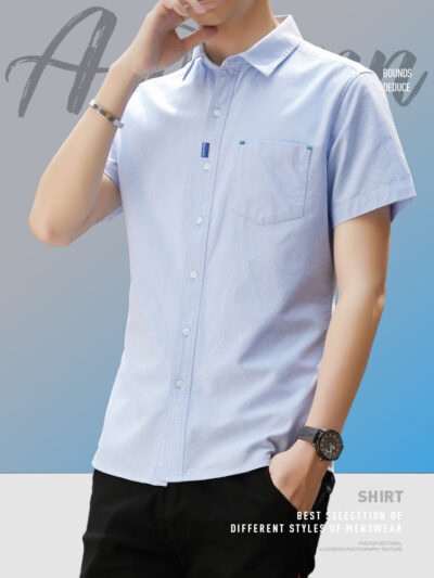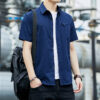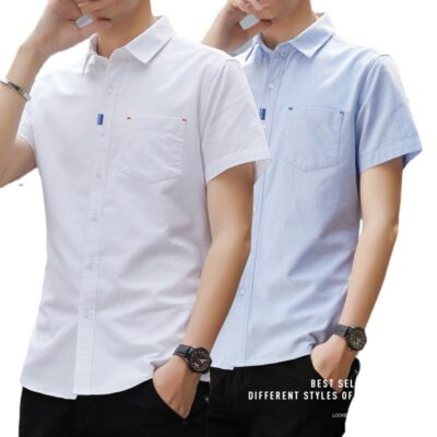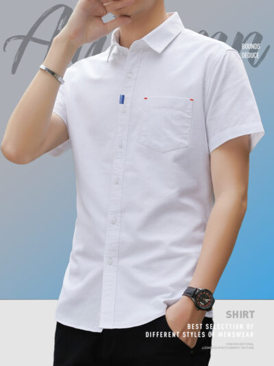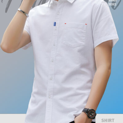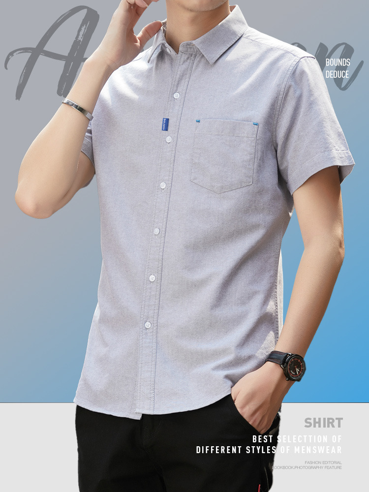 Một thế hệ áo sơ mi nam ngắn tay cotton mùa hè xoay tròn phù hợp với áo sơ mi nam thoáng khí có ve áo hợp thời trang dành cho nam giới