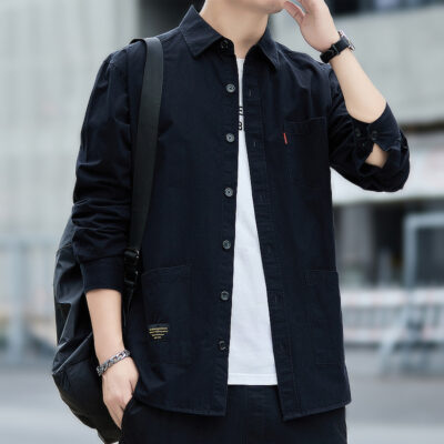 Một thế hệ cotton nguyên chất đã giặt sơ mi công cụ dài tay áo khoác nam mùa xuân và mùa thu sơ mi giản dị quần áo nam