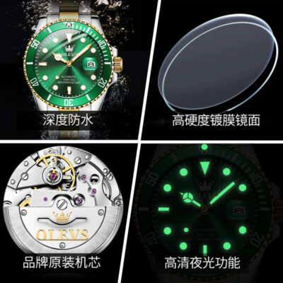 Một thế hệ của thương hiệu Laoolishi đồng hồ dạ quang chống thấm nước Lux xanh nước ma đồng hồ cơ nam đồng hồ đeo tay nam