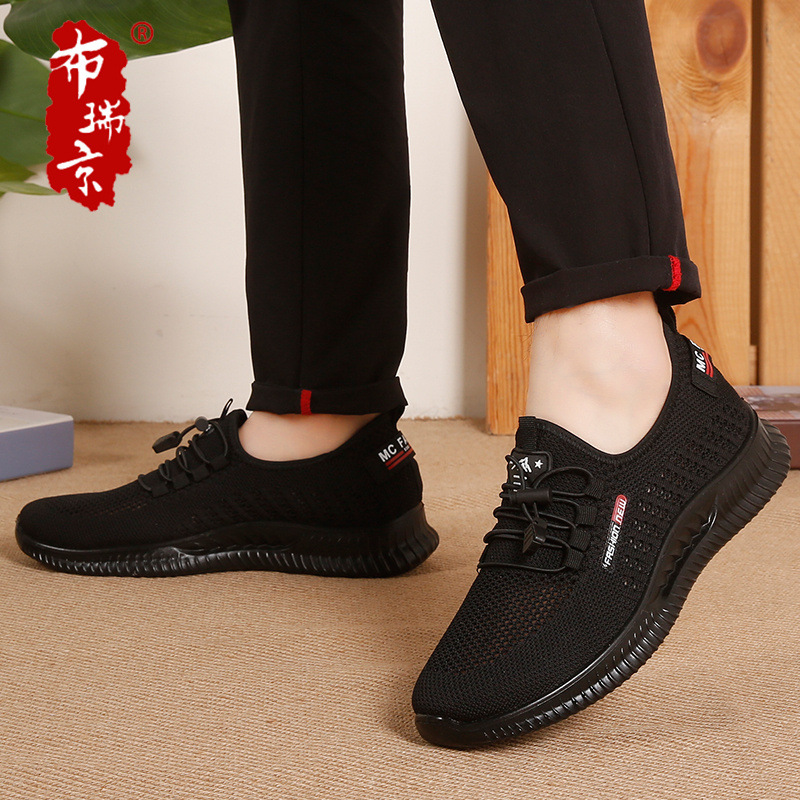Một thế hệ giày nam mùa hè giày lưới mũi tròn giản dị giày lưới thoáng khí cho nam bố giày người già thường đi bộ