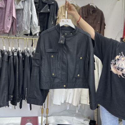 Một thế hệ tóc ngắn đi xe máy áo khoác da pu nữ mùa thu đông mới phong cách Hàn Quốc phong cách nước ngoài áo khoác da cổ đứng giảm tuổi