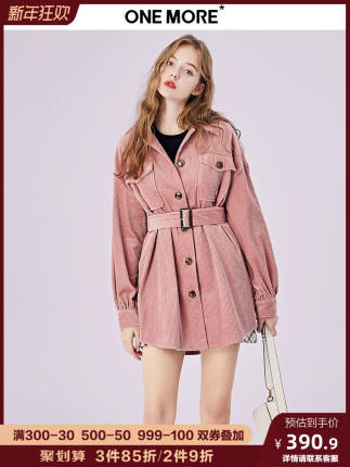 MỘT THÊM2020 mùa xuân mới áo khoác màu hồng váy nhung kẻ sọc lỏng áo sơ mi nữ