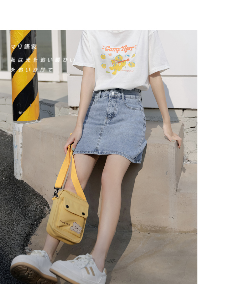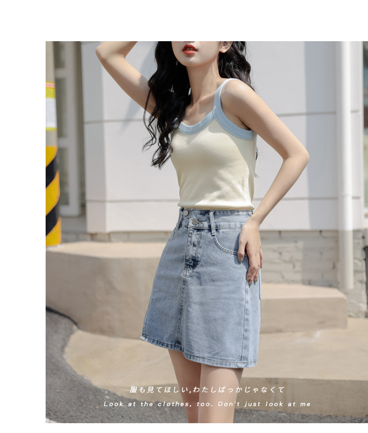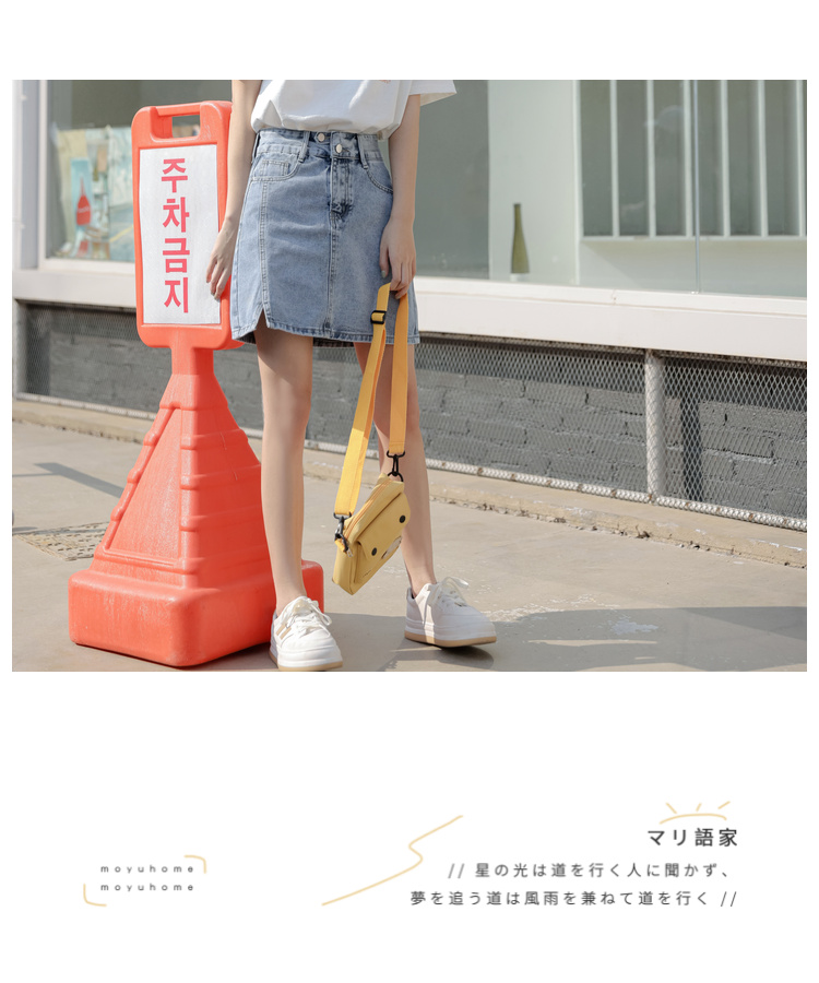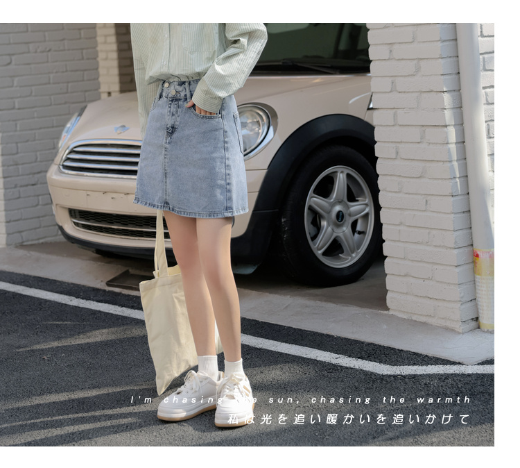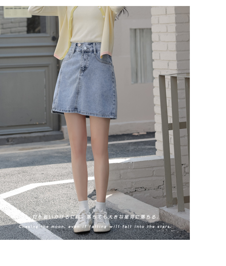 Moyujia 2022 váy mới váy ngắn thời trang váy cạp cao thiết kế niche trong váy denim phụ nữ
