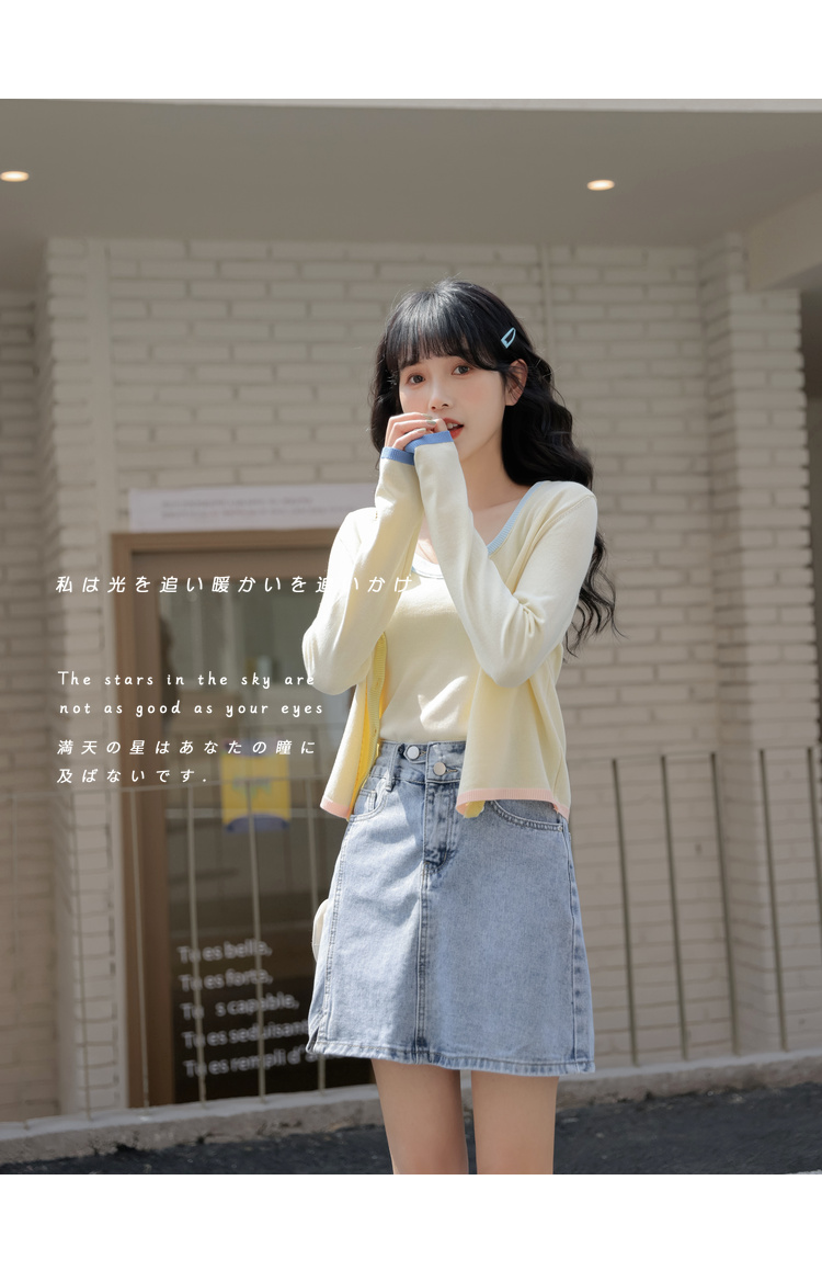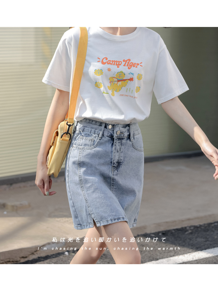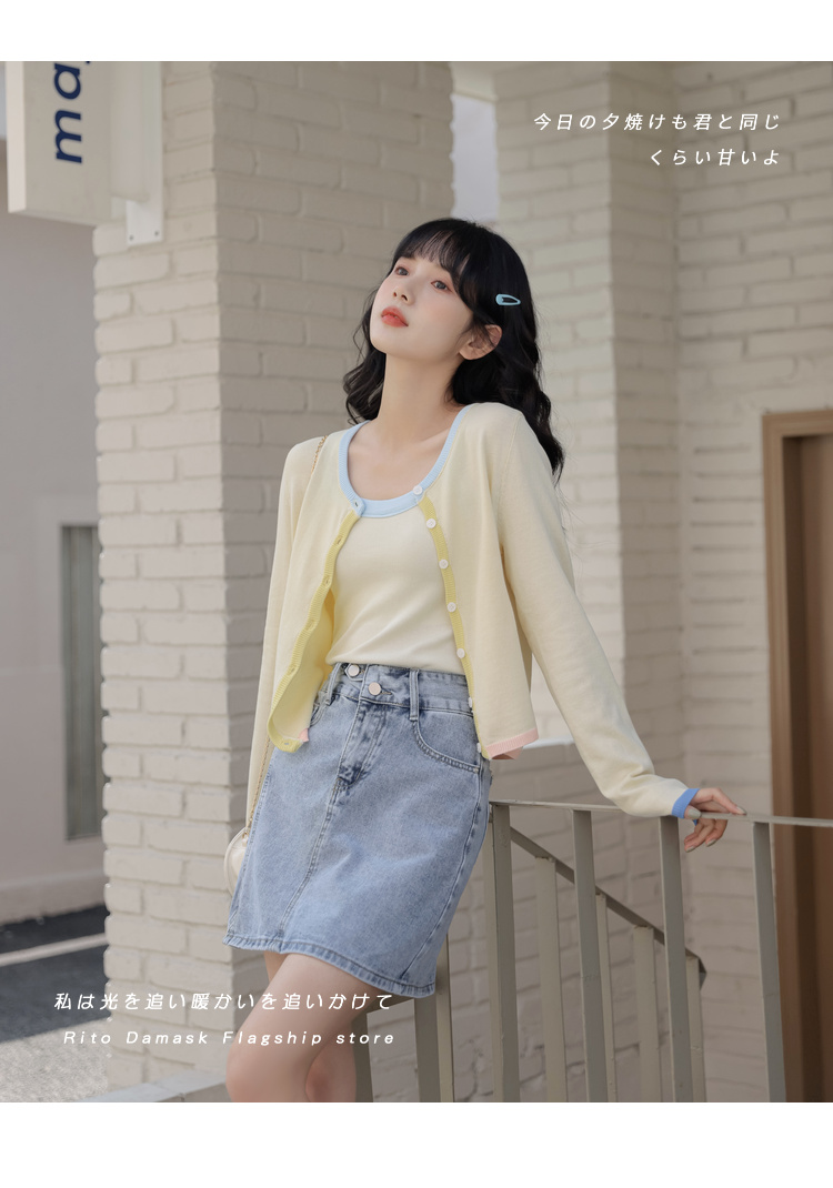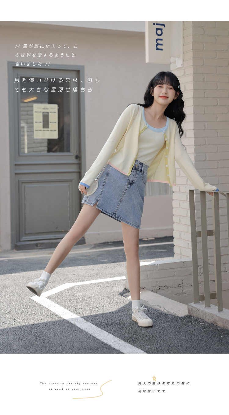 Moyujia 2022 váy mới váy ngắn thời trang váy cạp cao thiết kế niche trong váy denim phụ nữ