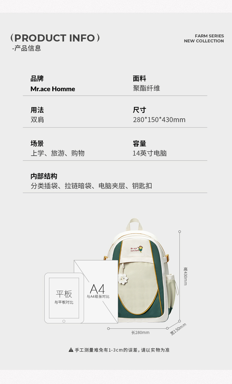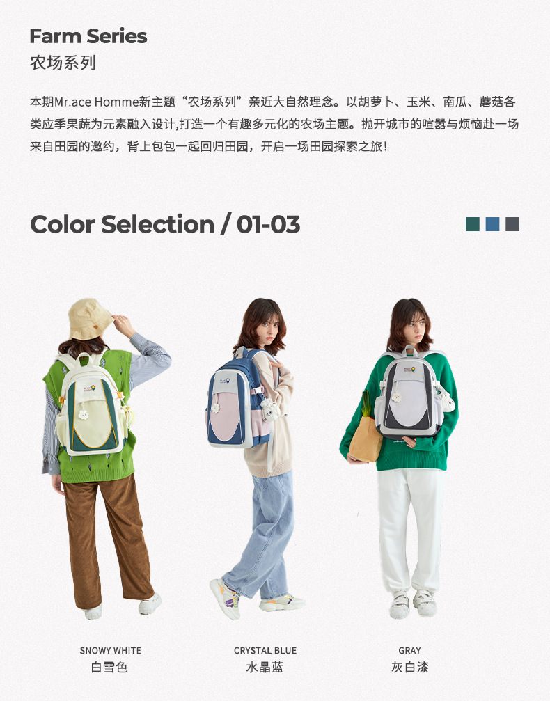Mrace trang trại loạt retro ba lô học sinh trung học cơ sở và trung học ba lô chống nước đơn giản dụng cụ phong cách đi lại schoolbag