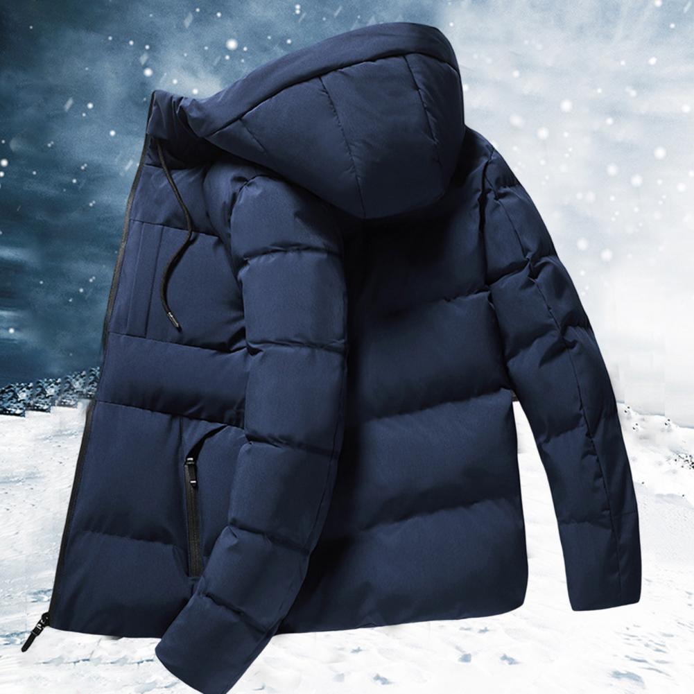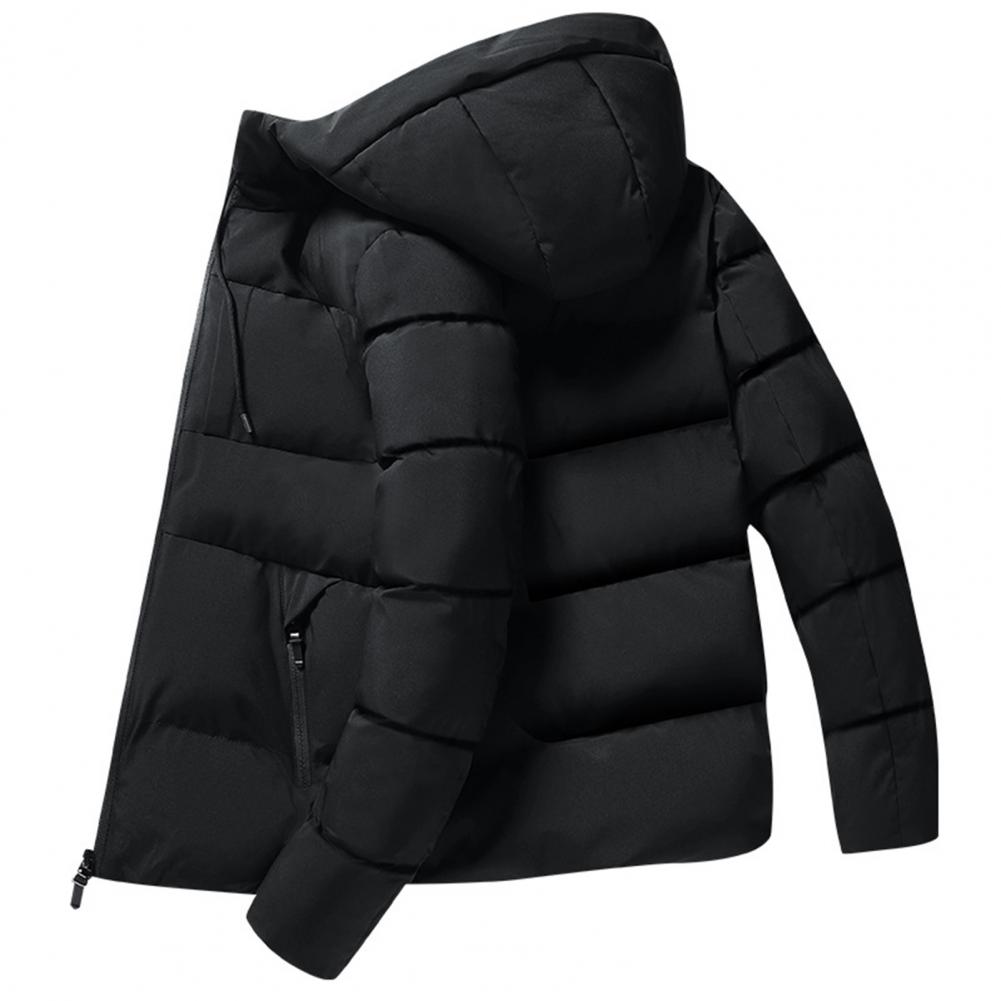 Men Jacket Cotton Padded Long Sleeve Solid Color Fluffy Filling Zipper Coldproof Autumn Winter Hooded Windbreaker for Working