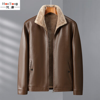 Mùa Đông 2022 Nhung Mới Nam Cổ Đứng Áo Khoác Da Dây Kéo Cổ Trung Niên Và Cao Tuổi Áo Khoác Da Nam Bán Buôn