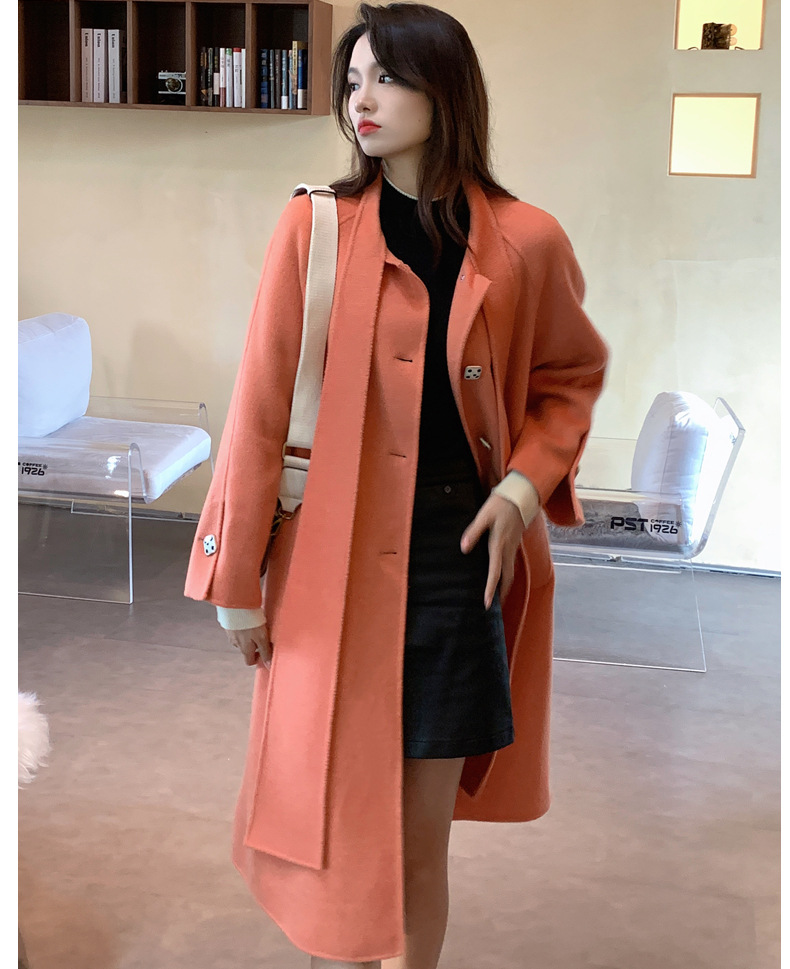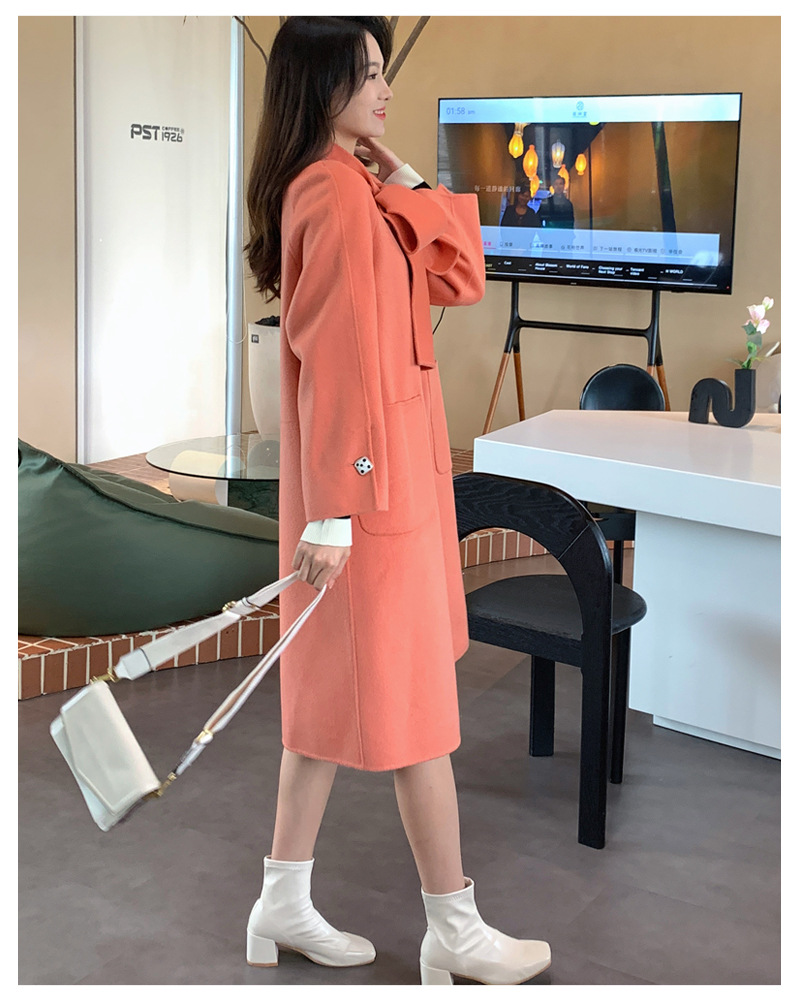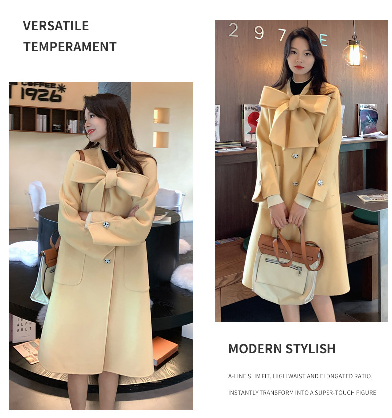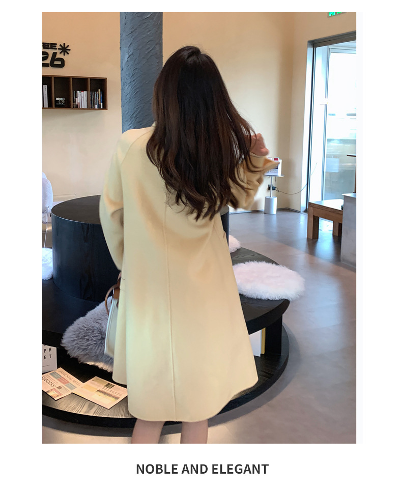 Mùa Đông 2023 Mới Áo Khoác Cashmere Vai Xếp Ly Ngành Công Nghiệp Nặng Dài Áo Khoác Nữ 2 Mặt Khâu Áo Khoác Cashmere