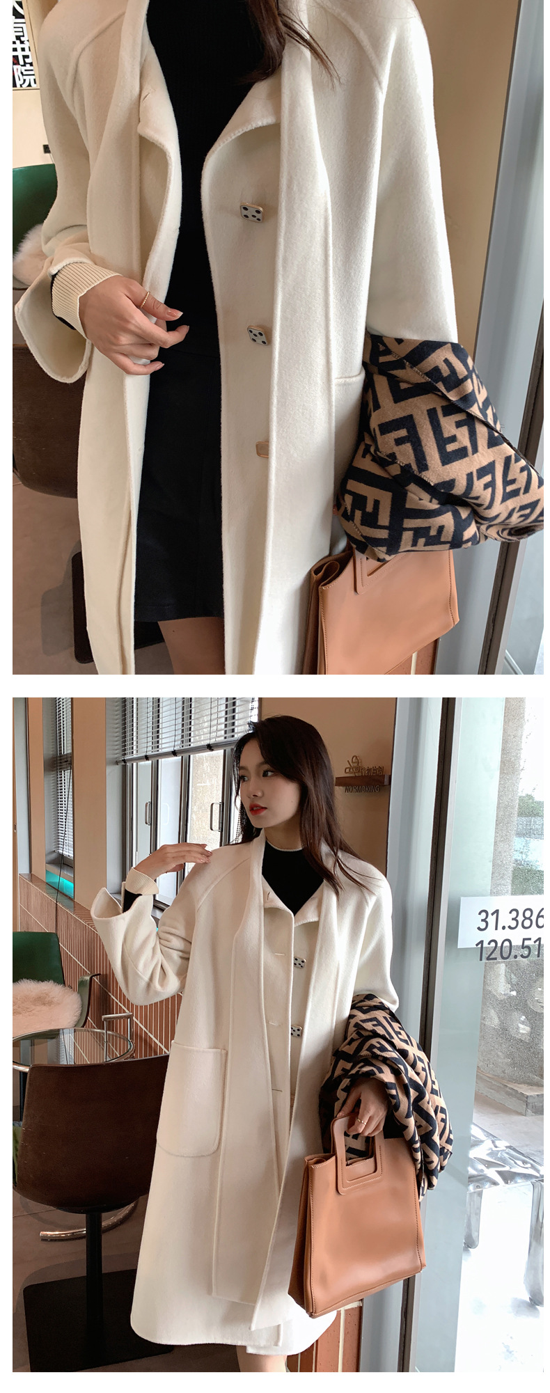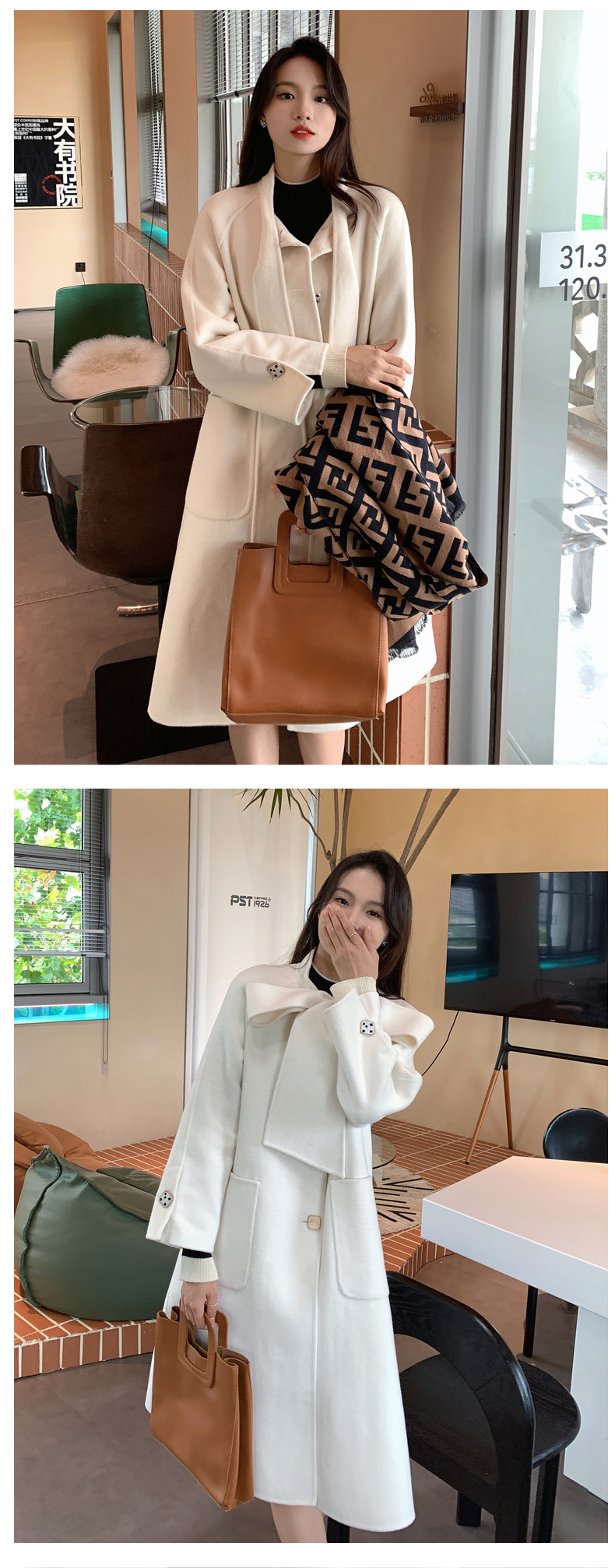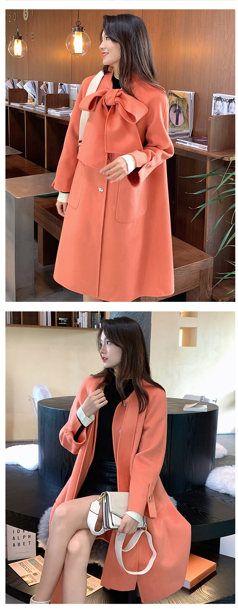 Mùa Đông 2023 Mới Áo Khoác Cashmere Vai Xếp Ly Ngành Công Nghiệp Nặng Dài Áo Khoác Nữ 2 Mặt Khâu Áo Khoác Cashmere