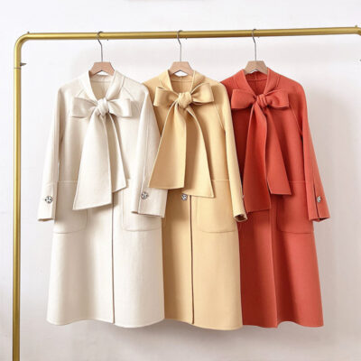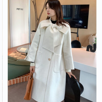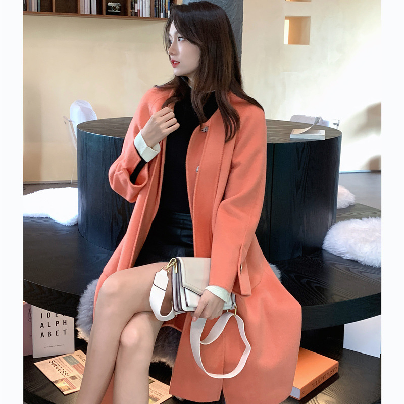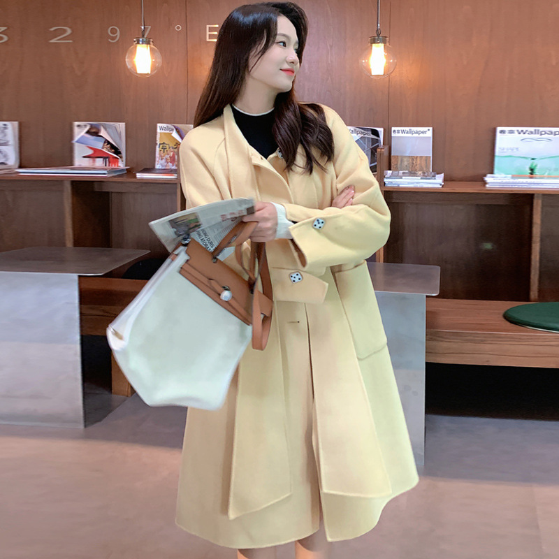 Mùa Đông 2023 Mới Áo Khoác Cashmere Vai Xếp Ly Ngành Công Nghiệp Nặng Dài Áo Khoác Nữ 2 Mặt Khâu Áo Khoác Cashmere