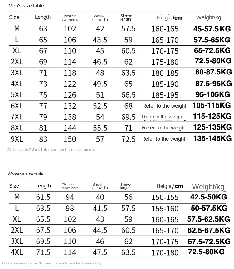 3.If your body is overweight, then you choose the size based on your body weight; If your body is thin, then you can choose the size based on your height